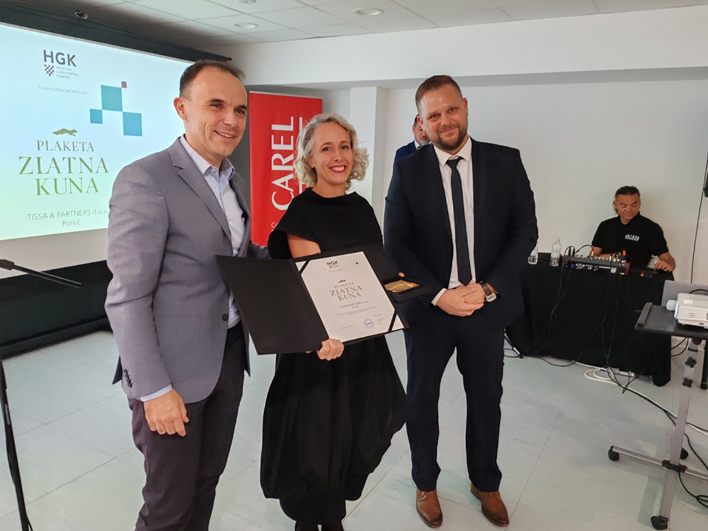 Nakon glazbenog intermeza kojeg je upotpunio duo harmonikaša Orlando Lukež i Ilario Peršić iz Umjetničke škole "M. B.Rašan" Labin dodijeljene su nagrade Zlatna kuna. Prije dodjele poslovnik tajnik Županijske gospodarske komore Damir Sirotić govorio je o prošlogodišnjim pokazateljima u gospodarstvu Istre. Ovogodišnji dobitnici plaketa Zlatna kuna su Tissa & Partners d.o.o. iz Poreča u kategoriji malih trgovačkih društava, Uniline Mobility d.o.o. iz Pule u kategoriji srednjih trgovačkih društava, dok je u kategoriji velikih trgovačkih društava dobitnik priznanja Carel Adriatic d.o.o. iz Labina. Direktorica Tissa & Partners d.o.o. Ana Slamar istaknula je kako biti dobitnik Zlatne kune, simbola izvrsnosti u poslovanju, u kategoriji malih trgovačkih društava u Istarskoj županiji za tvrtku predstavlja veliko priznanje za dosadašnji rad i pristup.