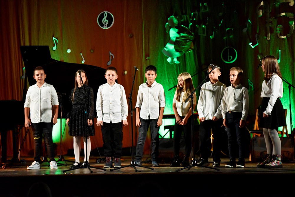 Svečani koncert predstavljao je zanimljiv splet izvedbi sadašnjih i bivših učenika. Započeli su ga prvašići veselom pjesmom »Notni stan«, uz pratnju učiteljice Tene Bevčar. Nakon njih na pozornici labinskog Kina redali su se solisti na klaviru, harmonikama, gitarama, violini, klarinetu i saksofonu, koji su u ovo kratko vrijeme od početka nastave uspjeli pripremiti zavidan repertoar.