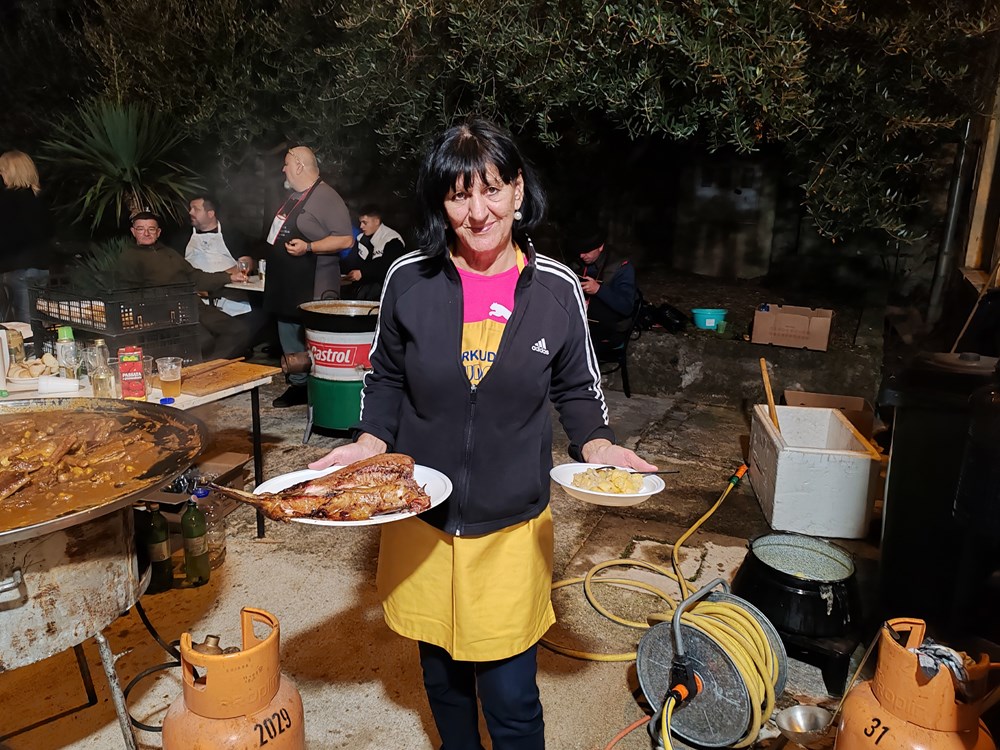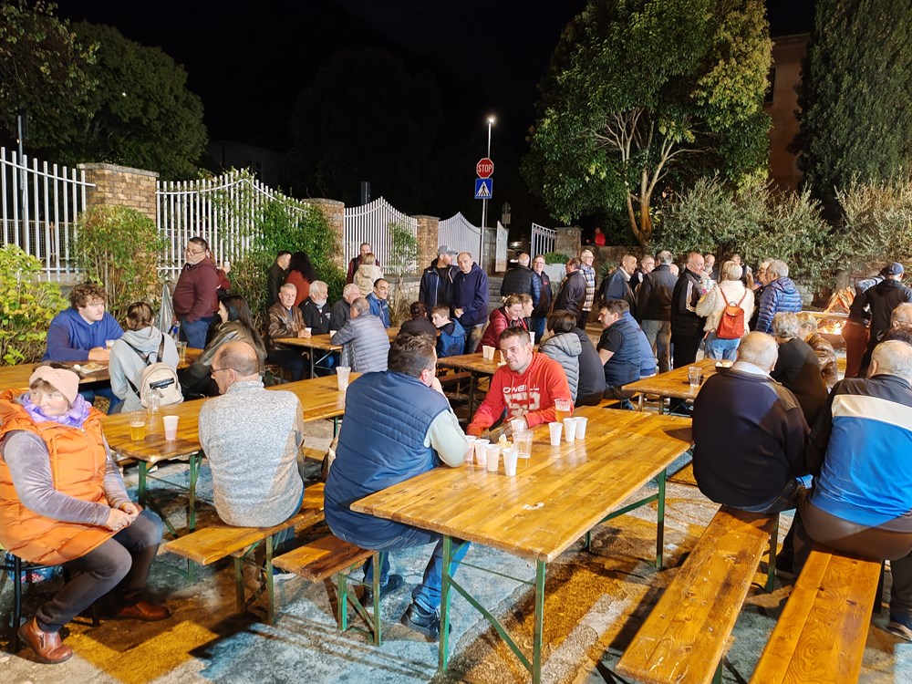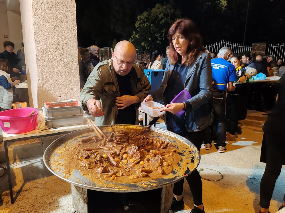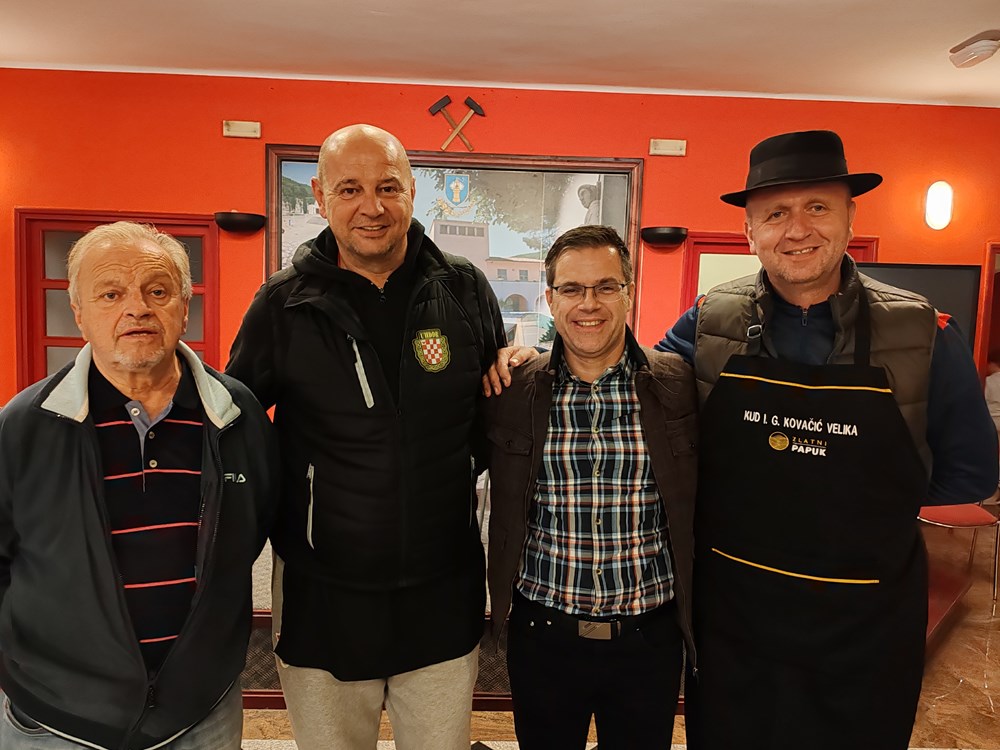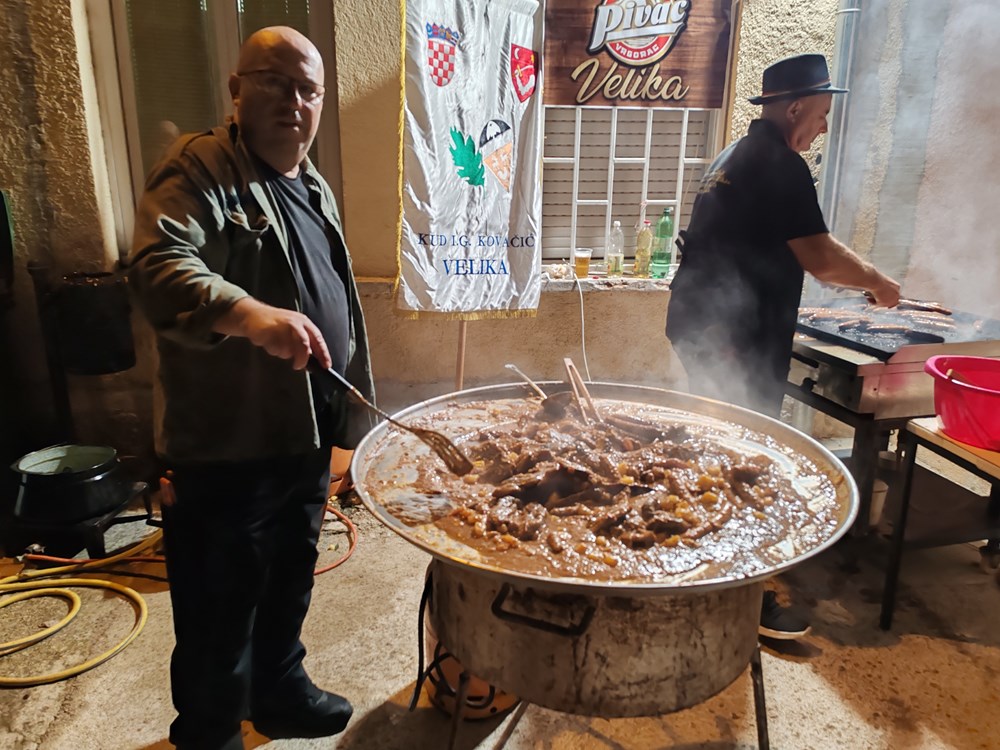 - Sve je počelo 1995.godine kada smo pozvani da predstavljamo Istarsku županiju u Slavoniji na manifestaciju Čuvajmo običaje zavičaja. Mi smo tamo nastupili sa izvornim folklorom, bila su to još uvijek ona ratna vremena. Bili smo njihovi gosti i tu smo se sprijateljili i do danas se posjećujemo i družimo, razmjenjujemo naš rad i delicije svoga kraja. Mi gore predstavimo naš folklor i Istru, donesemo pidoće, lignje, neki puta radimo brodet sa palentom, maneštru i za što se čeka u redu a oni nam donesu svoj folkor, običaje i kuhinju. Iduće godine proslaviti ćemo 30. obljetnicu našeg druženja, rekao je Knapić. Glavni operativac uz članove udruge Hrvatskih dragovoljaca i branitelja Domovinskog rata općine Velika te članove KUD-a Ivan Goran Kovačić iz Velike, tamošnjeg Lovačkog društva i Sportsko ribolovnog društva" Veličanka" koji su sudjelovali u pripremi i podijeli hrane bio je predsjednik toga KUD-a Bernard Gruić