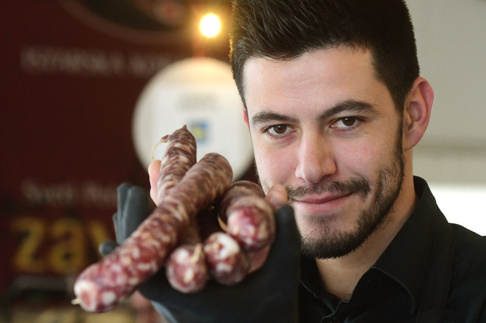 Paolo Jelenić iz istoimene pršutarne, izložio je također vrhunske istarske kobasice, među njima klasičnu istarsku suhu, domaću kosnicu, kobasicu s tartufima i jednu koju zovu po žminjski Uganj jer je pikantna, istarska varijanta slavonske kobasice.