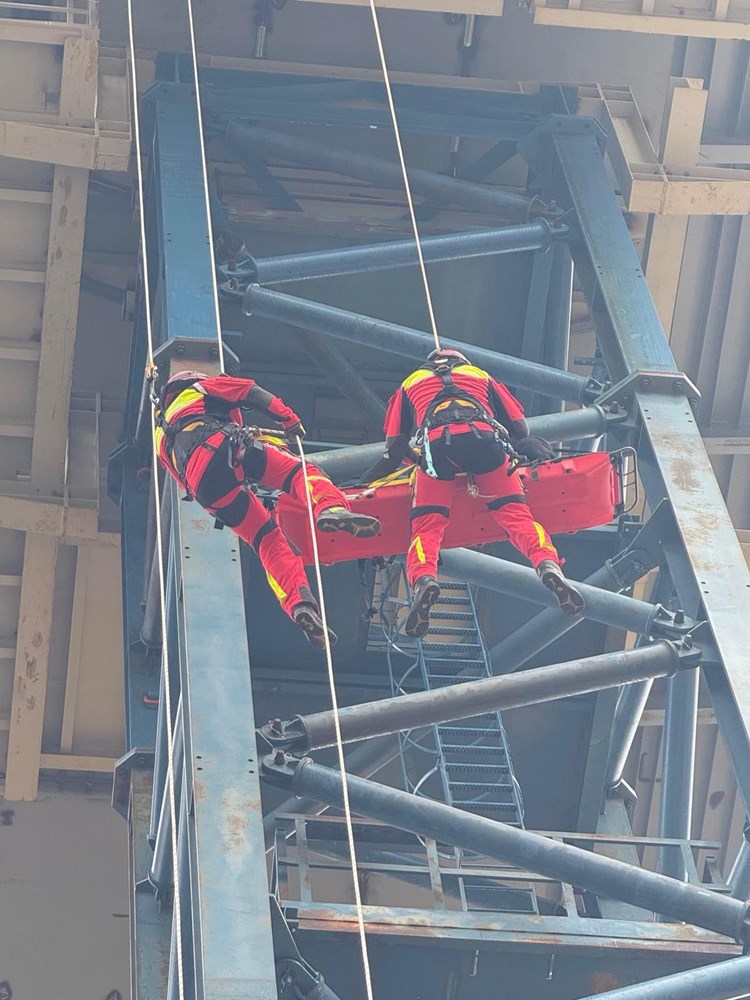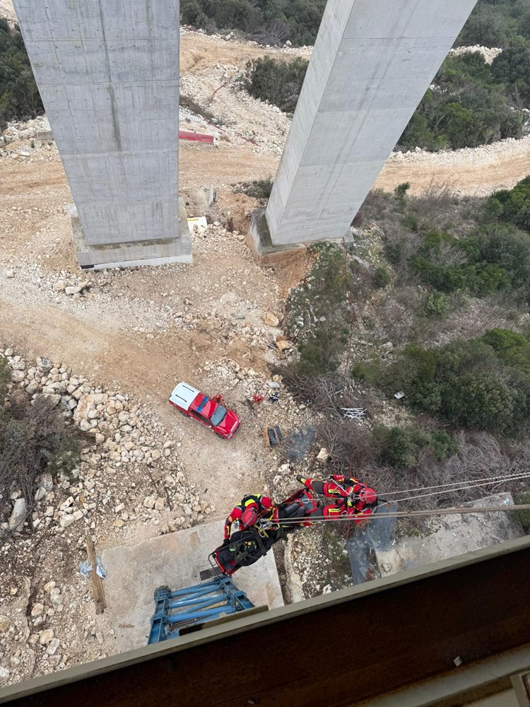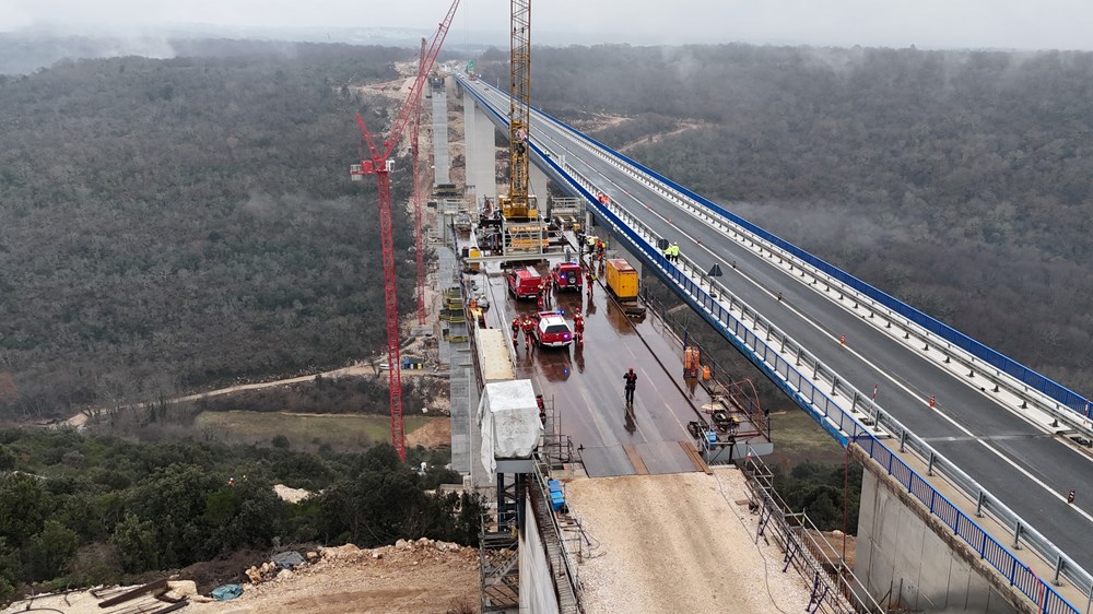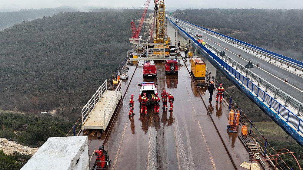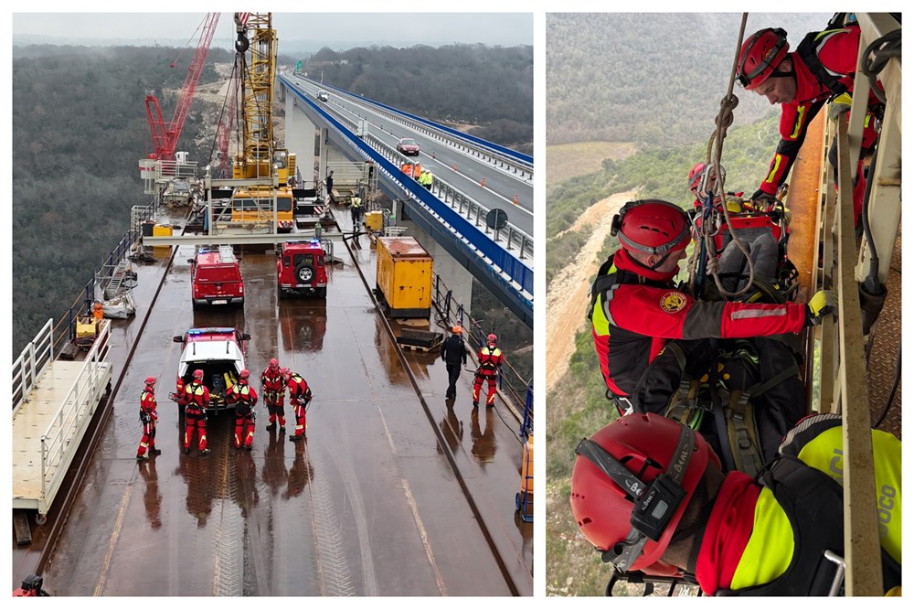Zajednička vježba spašavanja "unesrećenog radnika" s visine provedena je u organizaciji JVP-UVFP Rovinj-Rovigno i nosioca radova na izgradnji Istarskog Ipsilona - Bouygues Travaux Publics na gradilištu novog vijadukta Limska Draga.