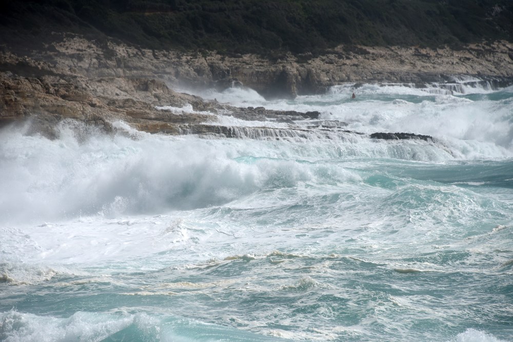 Olujno jugo na najjužnijoj točki istarskog poluotoka priredilo je danas pravi spektakl u Premanturi. Čak i ako niste veliki ljubitelji vjetrovitog vremena, spoj vjetra i valova ne može vas ostaviti ravnodušnima.