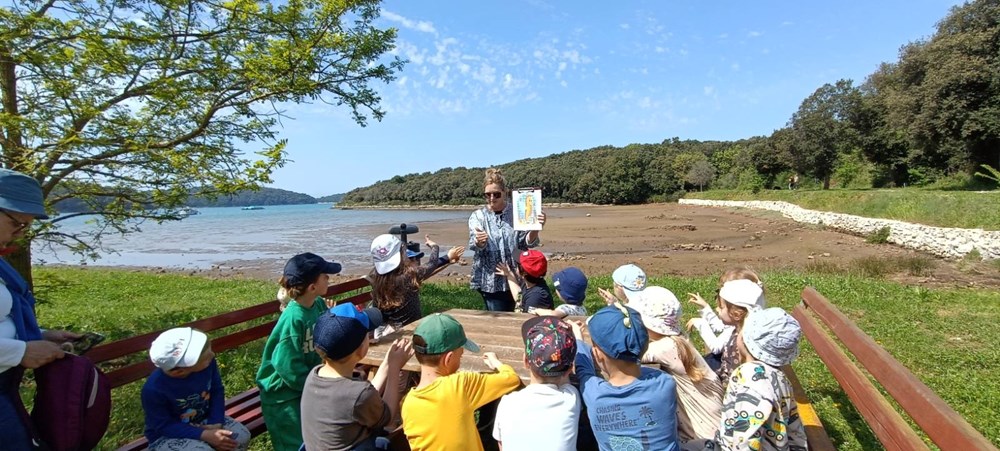 Edukativni dio programa nastavio se u uvali Soline, gdje su djeca učila o tradicionalnoj gradnji suhozida, kamenoj skulpturi iz obližnje Cave Romane te o fascinantnim biološkim osobinama morskih konjića – riba koje plivaju uspravno, nemaju zube ni želudac, i kod kojih mladunce rađa mužjak.