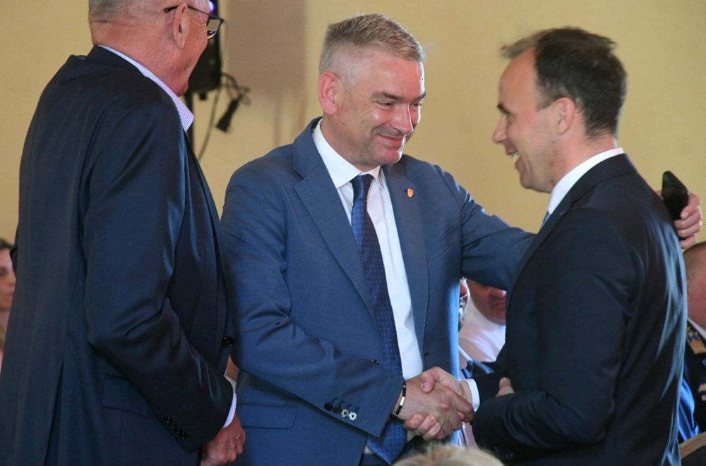 Prije svečane sjednice gradonačelnik, predstavnici Grada, udruga antifašista i branitelja, te prijateljskih gradova zajedno su položili vijence uz spomen-obilježje poginulim borcima u NOB-u pokraj gradske palače.
