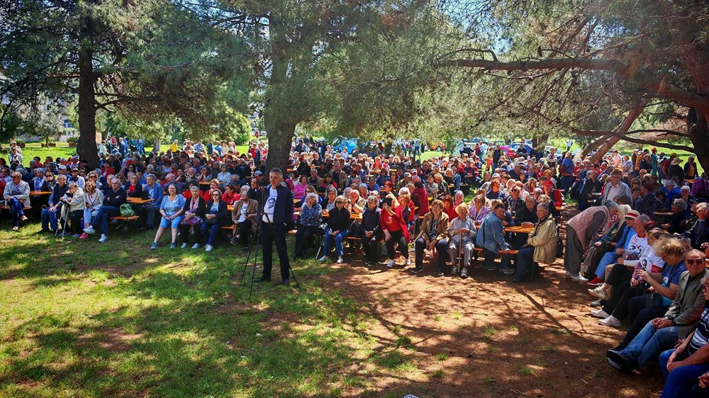 Vani, ispred samog centra, također je postavljena izložba "Spaljena sela u Istri", koja dokumentira stradanja stanovništva tijekom Drugog svjetskog rata. Program se nešto kasnije premjestio na dječje igralište uz more, gdje je održan narodni zbor uz kulturno-umjetnički program i tradicionalni fažolski ručak, a među prisutnima smo spazili i legendarnog jugoslavenskog generala Ivana Miškovića, koji će u listopadu proslaviti svoj 105-i rođendan.