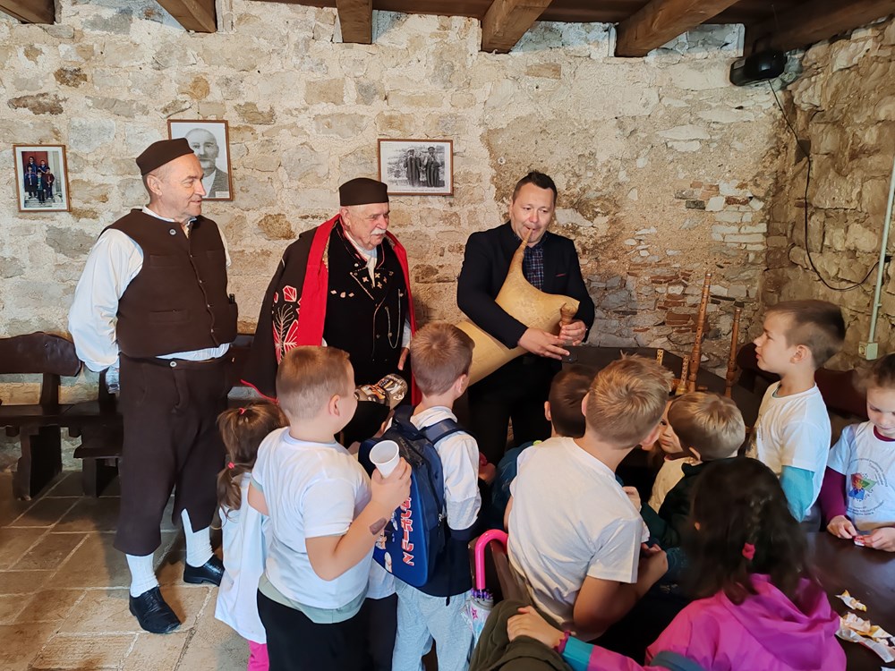 Djeci su pokazana i izvorna istarska glazbala, Zoran Karlić na mehu (Snimio Branko Biočić)
