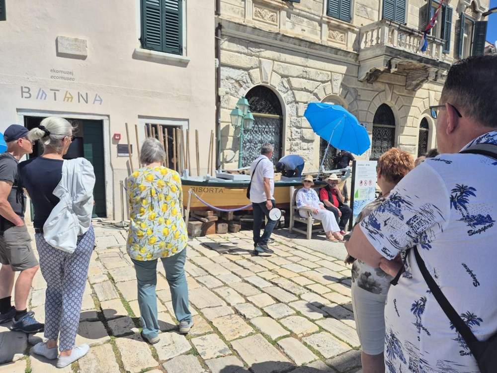 Tijekom obilaska, koji je trajao otprilike 2 sata i 30 minuta, sudionici su imali priliku posjetiti jedinu postolarsku radionicu u Rovinju smještenu u ulici Zdenac, originalnu rovinjsku konobu Spacio Matika u ulici Vladimira Švalbe gdje su sudjelovali u radionici izrade slastica – rovinjskih fijoka. U Ekomuzeju Kuća o Batani mogli su saznati više o rovinjskoj tradiciji ribarstva i batane, a u neposrednoj blizini ekomuzeja predstavljeno je krpanje ribarskih mreža i izrada/popravak brodice i pletenje demižana te vrša. U Kući rovinjskog pelinkovca saznali su sve o proizvodnji čuvenog rovinjskog pelinkovca i ostalih likera koji se proizvode prema tradicionalnoj stogodišnjoj recepturi.
