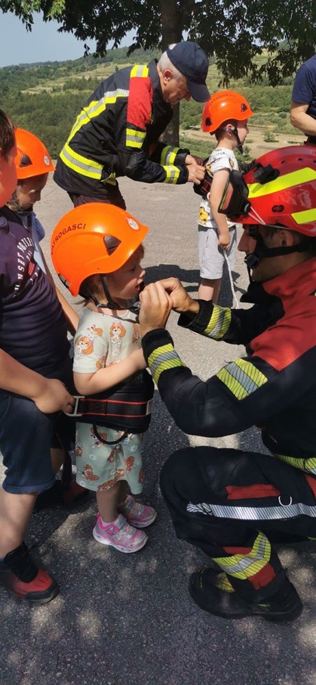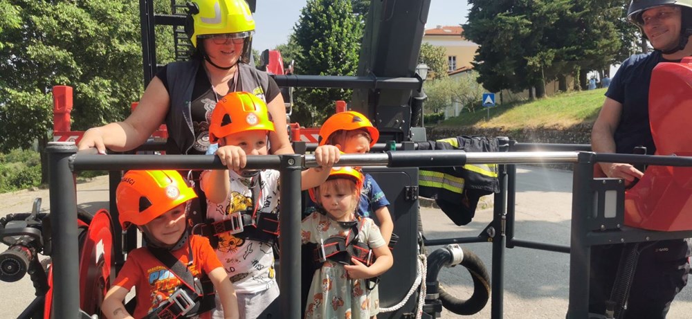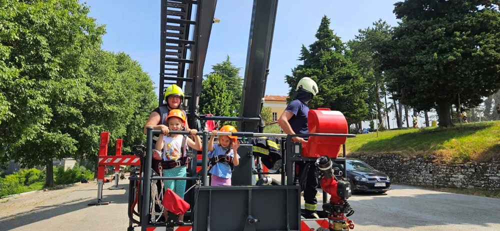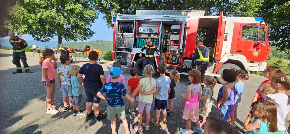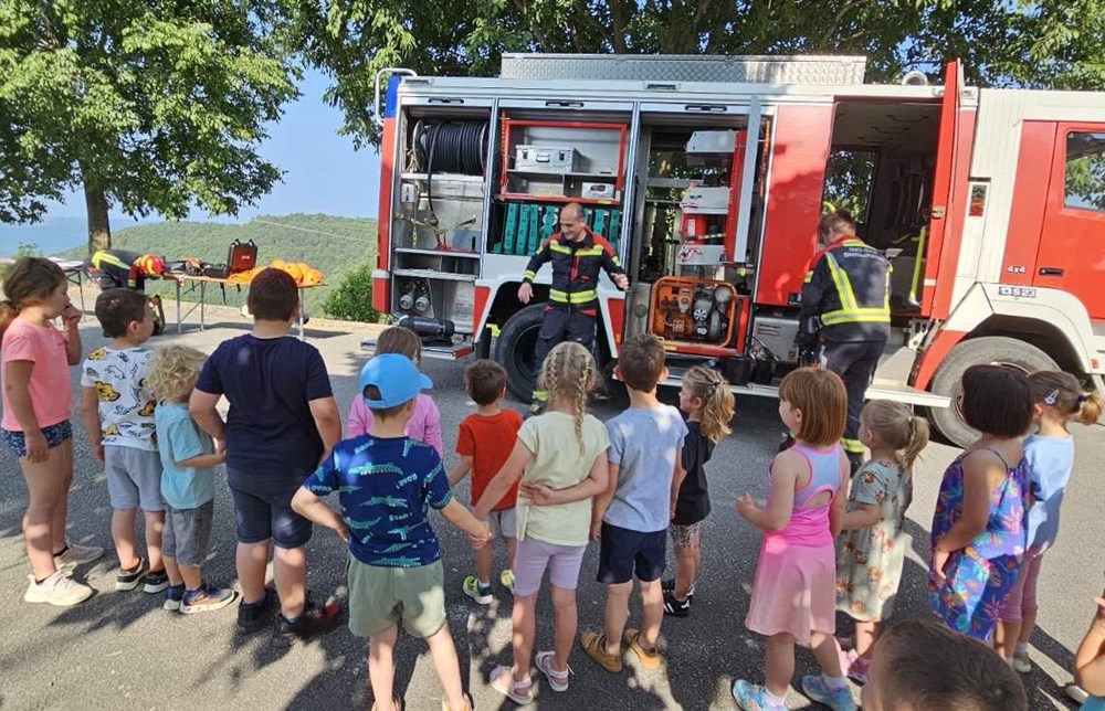 U četvrtak, 13. lipnja, vatrogasci Javne vatrogasne postrojbe Umag i Dobrovoljnog vatrogasnog društva Oprtalj održali su vježbu i edukativnu prezentaciju za djecu iz dječjeg vrtića pri Osnovnoj školi Milana Šorga u Oprtlju.