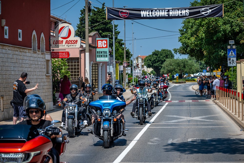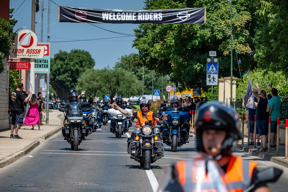 Točno u 11 sati s pulske rive krenuo je defile 2.500 Harley-Davidson motocikala, u sklopu 31. European H.O.G. Rallyja koji se do nedjelje održava u Medulinu.