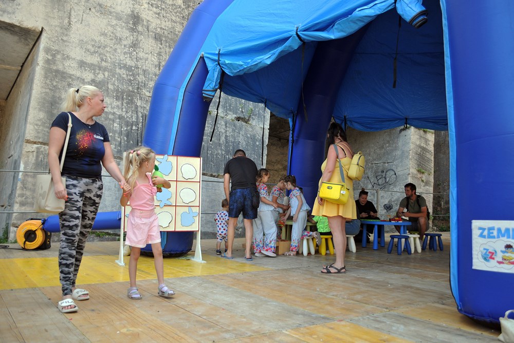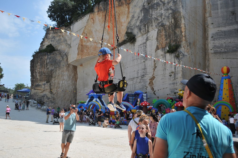Od 10 do 14 sati kamenolom je bio ispunjen bogatim programom prilagođenim djeci, a svi sadržaji i ulaz bili su besplatni. Najmlađe su oduševili napuhanci, društvene igre i animacije Zemlje Zabave, kreativne i eko radionice udruge Rotonda iz Vinkurana te oslikavanje lica koje je izvodila majstorica šminke Rozana Mihovilović Perc iz Make up Cornera.
