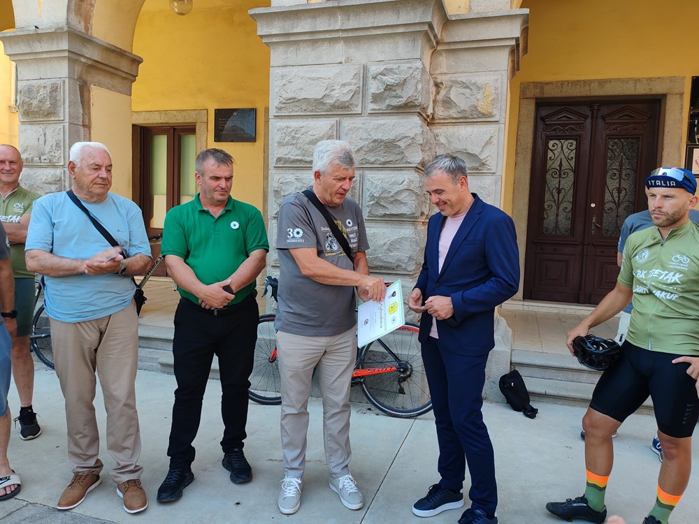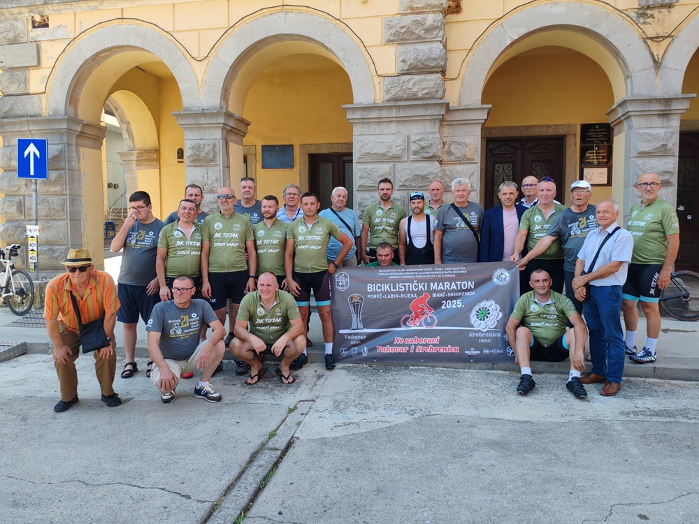 Na starogradskom trgu u Labinu, gradonačelnik Donald Blašković dočekao je 15 biciklista iz Biciklističkog kluba "Sabahudin Duzić Tetak" iz Donjeg Vakufa, koji su, u pratnji logističkog tima, u ranim jutarnjim satima krenuli iz Poreča u sklopu biciklističkog maratona "Ne zaboravi Vukovar i Srebrenicu".