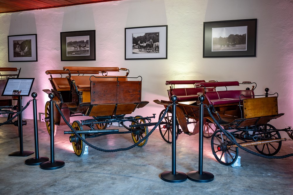 U ponudi su kočije različitih stilova i namjena: od luksuznih gradskih landau kočija koje su u viktorijansko doba bile statusni simbol, preko milord kočija koje su nudile udobnu i elegantnu vožnju, do lovačkih kočija koje su služile za prijevoz oružja, lovine i putnika u ruralnim područjima. Svaka kočija priča svoju priču – bilo da je riječ o poštanskoj kočiji četveropregu kojom su gosti dolazili na otočke polo utakmice, ili o protokolarnim kočijama kojima su se vozili brojni državnici i uglednici, poput Eleonore Roosevelt i Gamala Abdela Nassera.