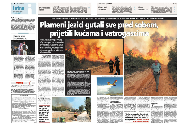 Tih je dana gorjelo i na Dragoneri, gdje je otvoreni plamen na divljem deponiju izazvao požar koji je zahvatio više od 17 hektara šikare i dijela maslinika. Policija je tada utvrdila da je uzrok bio otvoreni plamen nepoznatog podrijetla. Na pulskoj rubrici se, pak, pisalo da je Grad Pula zbog slabog interesa prvi put poslovne prostore pretvorio u stanove, a još jedna vijest koja se tog dana mogla pročitati je ta da je Bunarina bila dodijeljena pulskoj Lučkoj upravi.