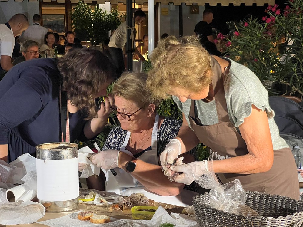 - Žiri je imao težak zadatak, ocijeniti desetke uzoraka, od onih izuzetno ukusnih do onih malo preslanih. Mnogi misle da je više soli bolje, ali nije tako. Upravo zato postoji škola, da se nauči prava mjera, objašnjava Peroković. Ove godine u školi soljenja sardela sudjelovalo je 35 ekipa, s ukupno 110 polaznika, od kojih čak trećina djeca do 12 godina.