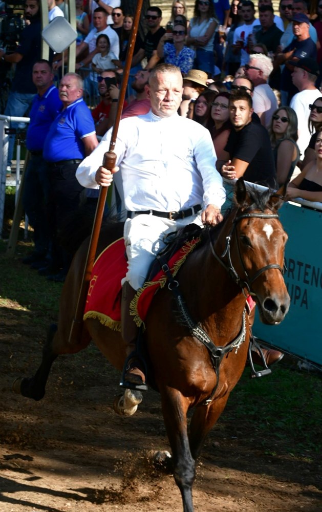 Dodao je i kako je ovogodišnja 50. Trka na prstenac donijela dva velika noviteta. Predstavu "Aktivisti" mladog autora Mihovila Rismonda u režiji Roberta Raponje, koja je izvedena iste večeri, a za sutra se očekuje vizualni spektakl: nekoliko padobranca će na posebno osmišljen način donijeti Prstenac na Gradišće.