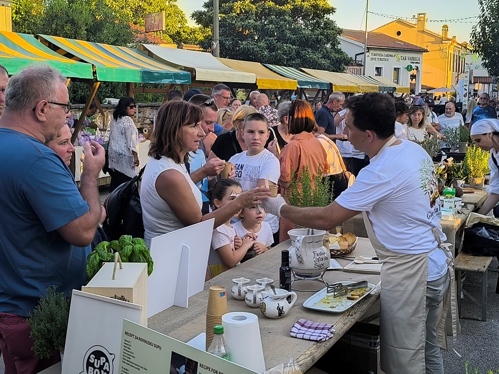 Posebno zanimanje izazvale su radionica izrade domaće pašte, koju je vodila Gracijela Damijanić, te prezentacija tradicionalne istarske pince u izvedbi Zdenke Jakus. OPG Macan nudio je svoje poznate sireve, a uz njih su se mogli kušati vrhunsko maslinovo ulje, sardoni i pedoći iz Santa Marine, ali i brojni drugi autohtoni proizvodi.