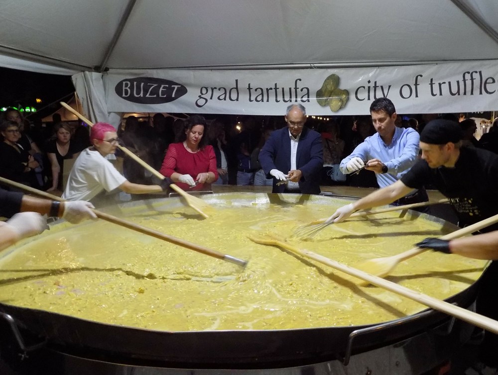 U pripremu fritaje, uključio se i buzetski gradonačelnik Damir Kajin. Zdušno je naribao tartufe kao i prije 26 godina, u to vrijeme kao saborski zastupnik, danas kao gradonačelnik, a društvo su mu pravili suradnici Dubravka Črnac Dujanić i Damir Blažević, ali i pjevač Rišpeta Ivo Amulić.