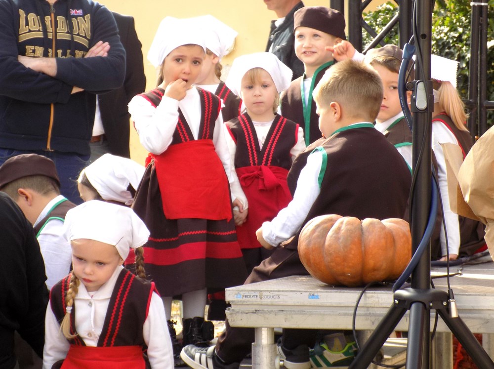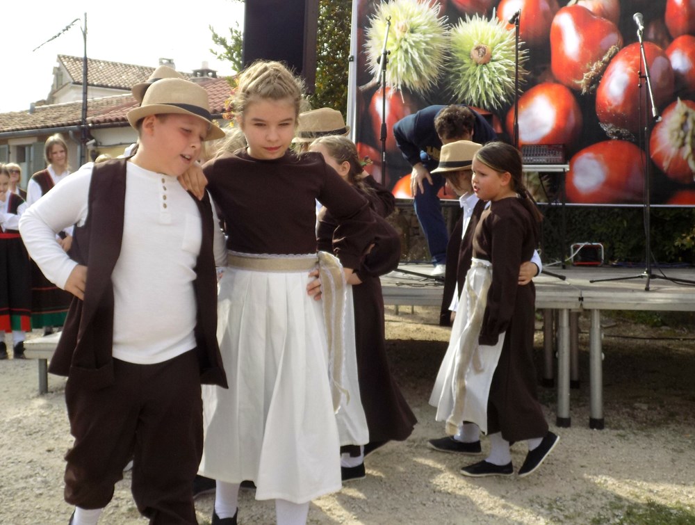 Upravo su najmlađi svečano otvorili 15. Kestenijadu na Trgu Sv. Jurja uz nastup Puhačkog orkestra "Babići". U zabavno - kulturnom programu "Portolanski veštiti" nastupili su polaznici Dječjeg vrtića i osnovci Osnovne škole "Milana Šorga" iz Oprtlja. Oprtaljska škola prošle školske godine sudjelovala je u projektu zavičajne nastave Istarske županije pod nazivom Portolanski veštiti. Učenici su sa svojim učiteljicama istražili tradicijske nošnje u Oprtlju te organizirali radionice šivanja u koje su se uključile vrijedne mame i none. Za Kestenijadu su izveli ples Moj ćaća je kupija kozu, u prekrasnim portolanskim veštitima. Na oprtaljskom području najčešće se svirala polka, vrsta živahnog plesa u paru, a često se svirala pjesma "Moj ćaća je kupija kozu za dva fjorina i po", polka nepoznatog autora.