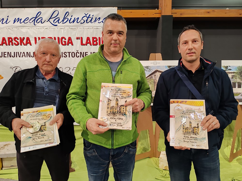 - Jako smo veseli nakon tih priznanja članovima našeg društva. Nismo se nadali ovakvom rezultatu.To znači da smo dobro radili ove godine. Naše društvo ima 140 članova i idemo sa pčelama po cijeloj Sloveniji. Drago nam je doći ovdje u Labin, lijepo se osjećamo, ponosmi smo da smo prijatelji sa pčelarskom udrugom Labin i nadamo se da će tako i ostati u budućnosti, rekao je Demšar. Predsjedniki ocjenivačkog povjerenstva prof. Dragn Bubalo sa Agronomskog fakulteta u Zagrebu je rekao kako je među 109 uzoraka meda bilo najviše meduna i to 37, zatim 17 cvjetnog meda, 14 lipovog meda, 10 bagremovog meda, 9 jelovog meduna, pet maklenovog meduna, četiri meda od drače i lipovog meduna, tri kestenovog meda i meda od bršljana te jedan kaduljin med.