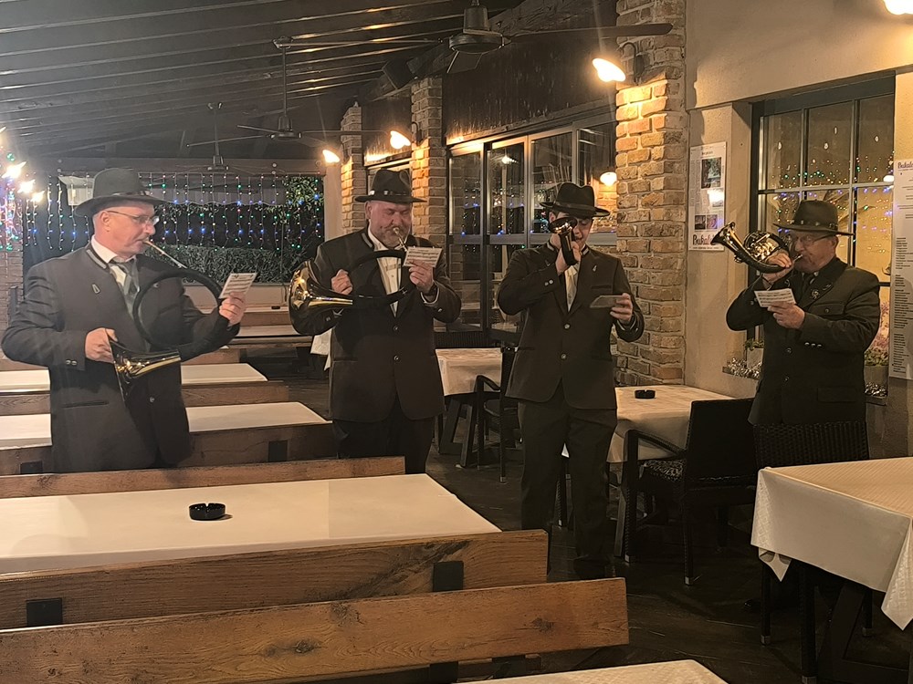 Rogisti Istarskog lovačkog saveza prilikom muziciranja na lovačkim rogovima (Snimio Zvonimir Guzić)