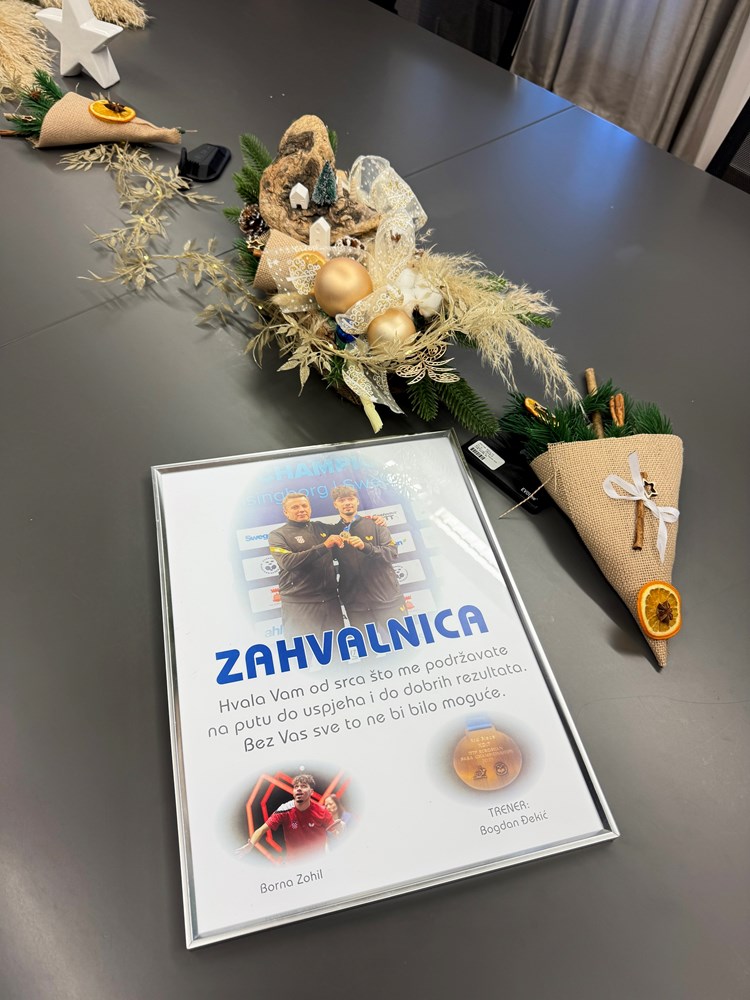 Danas je u općinskoj vijećnici održan prijem našeg najuspješnijeg parasportaša Borne Zohila. Mladi pomerski parastolnotenisač sudjelovao je na Europskom prvenstvu u švedskom Helsingborgu te je u konkurenciji mješovitih parova kategorije XD17 s partnericom Mirjanom Lučić osvojio treće mjesto i brončanu medalju.