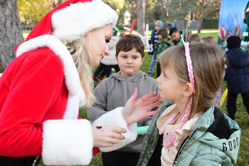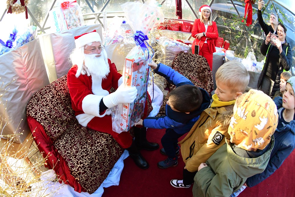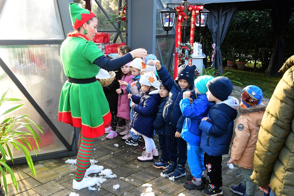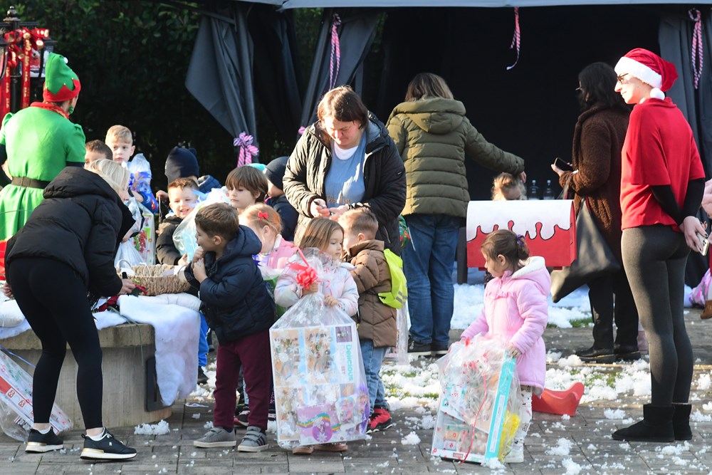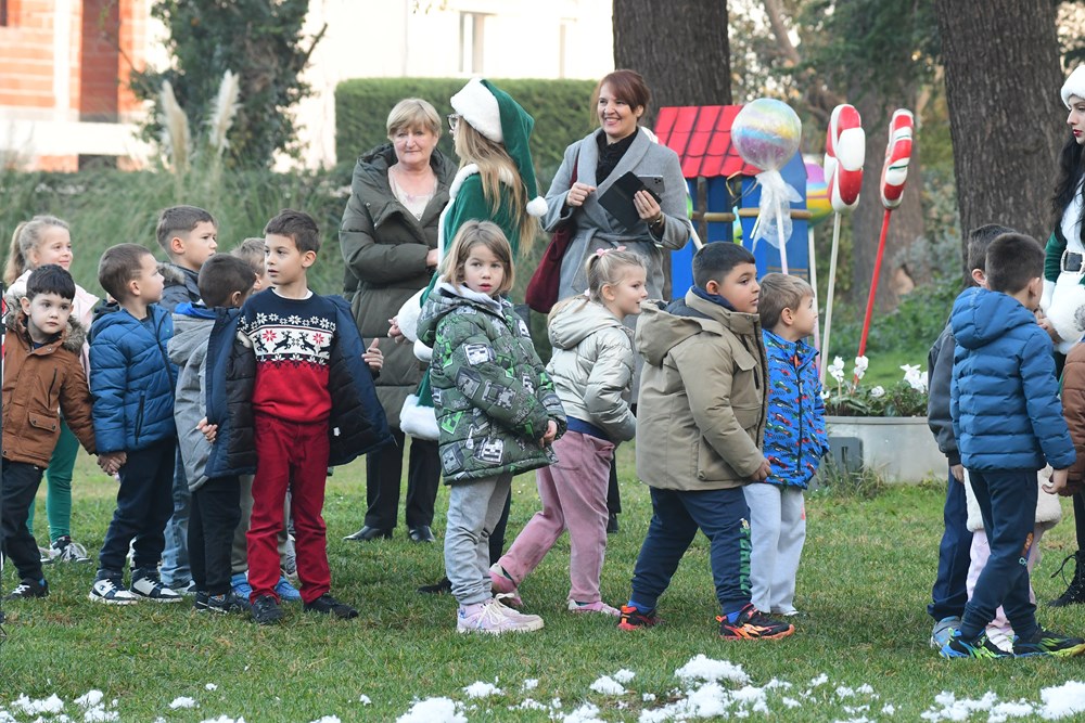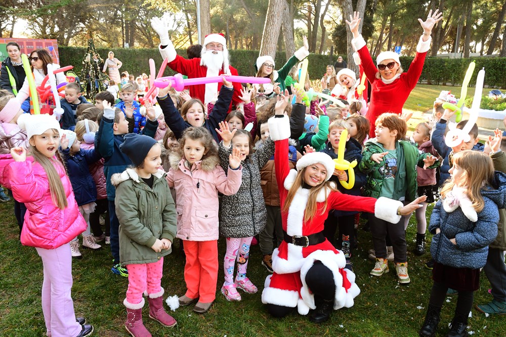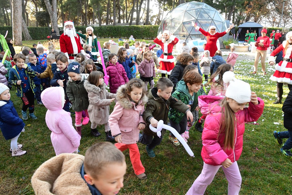 Sunčano jutro u fažanskoj rezidenciji Djeda Mraza bilo je prepuno zabavnih sadržaja za mališane - pa su tako imali i potragu za snježnim kuglama, da pomognu medvjediću sa Sjevernog pola da se osvježi, a bilo je to i plesa i pjevanja pjesmica. Djed Mraz je svakom od 260 mališana osobno uručio poklon, a otkrio nam je i što su ga najčešće pitali - je li mu to prava brada.
