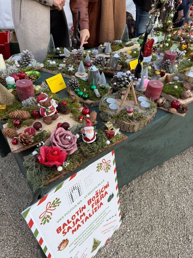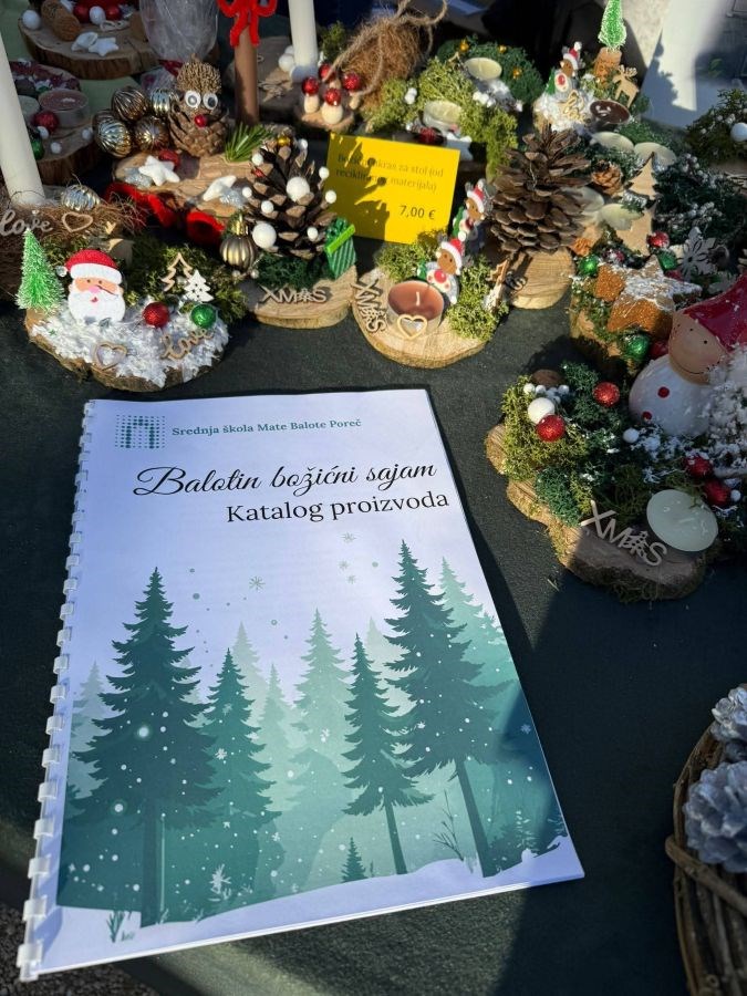 Uz slastice na ovom adventskom jutru veliku je pažnju privukao i Božićni sajam- Fiera Natalizia učenika Srednje škole Mate Balote koji su na prigodno uređenim štandovima prodavali pomno izrađene rukotvorine i proizvode proizašle iz projekta Čarolije održivosti-La magia della sostenibilità, pod vodstvom Helene Škutin Matijaš i Daisy Ghersinich Fiškuš, Učeničke zadruge Parentino pod vodstvom Mirele Marković i Dunje Brence i Vježbeničke tvrtke pod vodstvom Marine Blažević i Gracijele Bićanić.