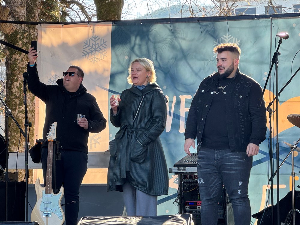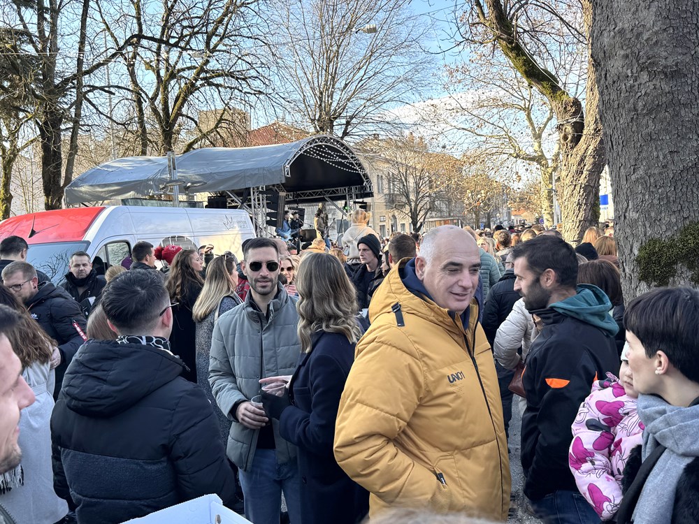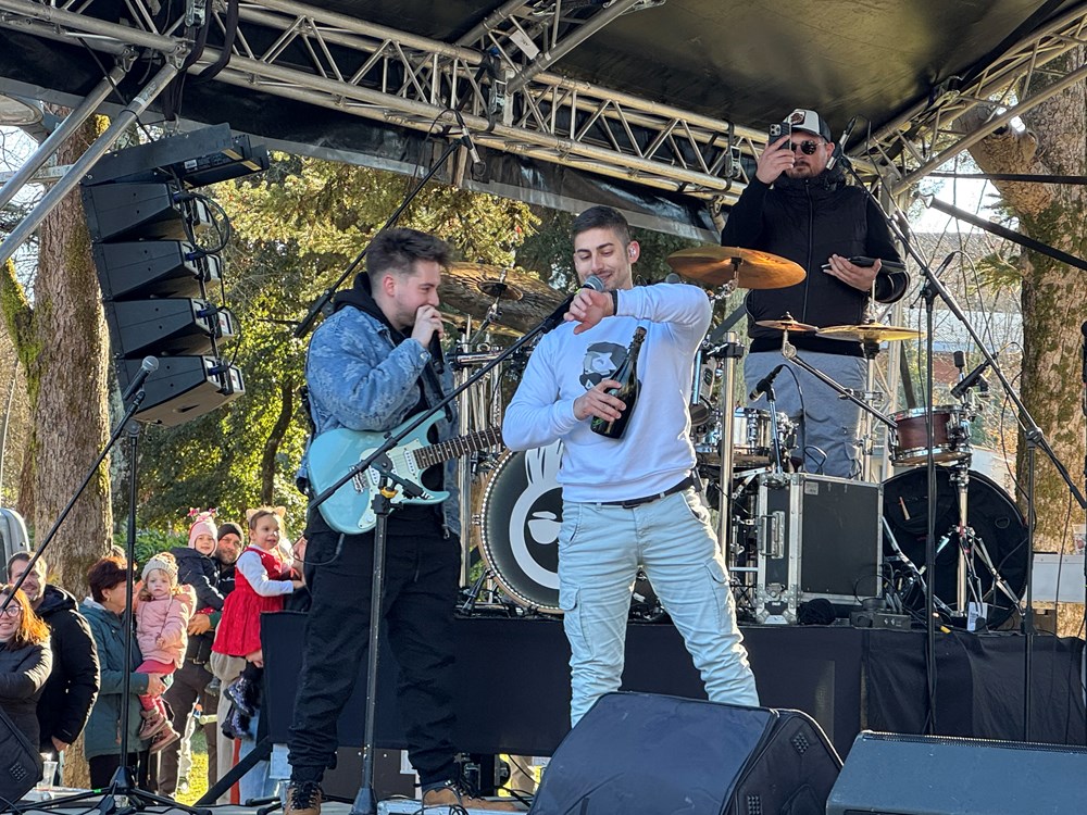 Tradicionalni doček u podne u Pazinu, na Šetalištu pazinske gimnazije, mjestu blagdanskog druženja, susreta prijatelja i dobre zabave, obilježila je izvrsna atmosfera.