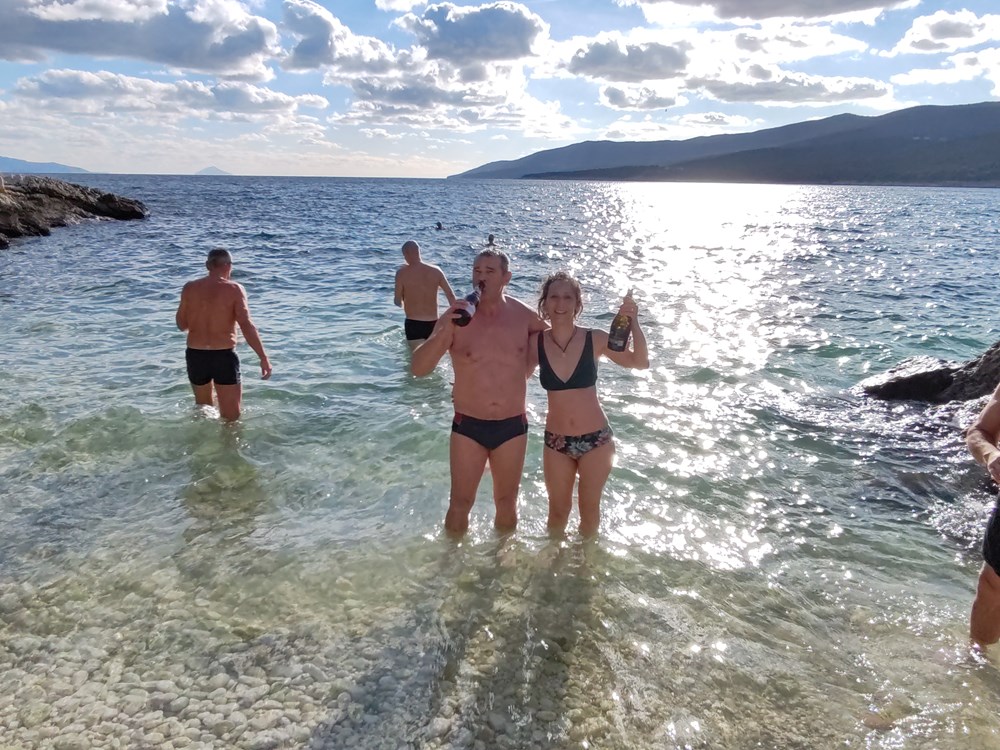 – Dvadesetak puta dolazio sam na novogodišnje kupanje u Rabac, a ovo mi je prvi put po buri. Inače se zimi ne kupam u moru, ali ovdje dolazim zbog druženja i održavanja tradicije. Širimo pozitivnu energiju – rekao je Lončar, a Goran Krstić je dodao: