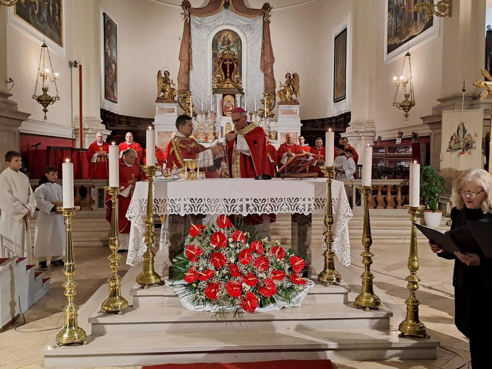 Dan je započeo ranojutarnjom misom na talijanskom jeziku, koju je predvodio velečasni Stefano Cataldo, vicerektor sjemeništa »Redemptoris Mater« u Puli. Večernju misu u 18 sati predvoditi će mons. Ilija Jakovljević, generalni vikar Vojnog ordinarijata Republike Hrvatske. Nakon svake mise, u skladu s višestoljetnom tradicijom, održava se pomazanje i blagoslov grla, jedan od najprepoznatljivijih obreda povezanih s ovim blagdanom.