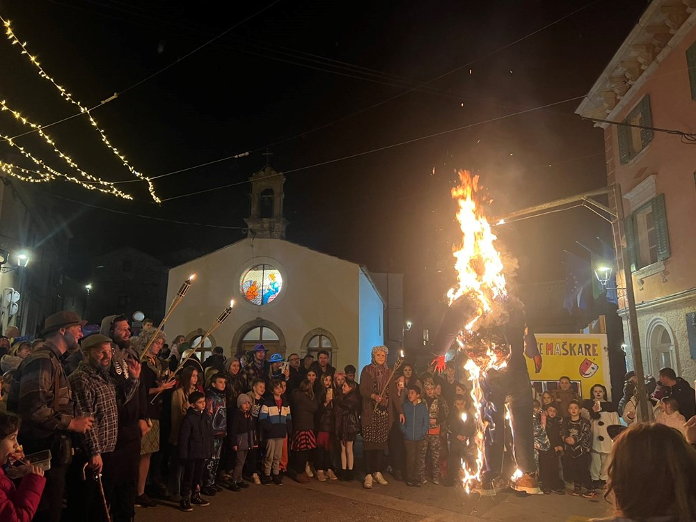 Veliko finale i posljednji dan petog, najveselijeg godišnjeg doba u Općini Medulin protekli su danas u znaku maškarane zabave, tradicionalnog čitanja šentence i spaljivanja pusta na medulinskoj Placi.