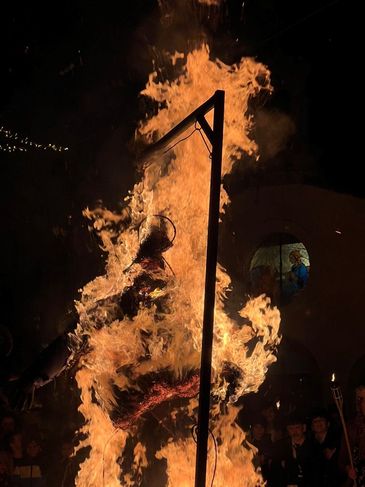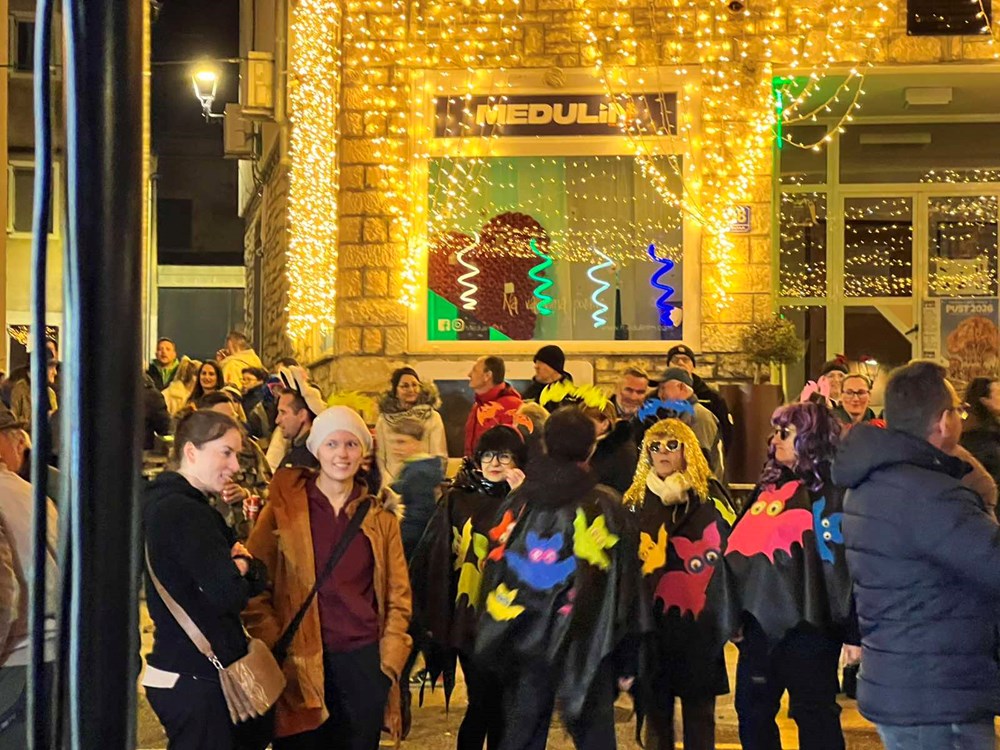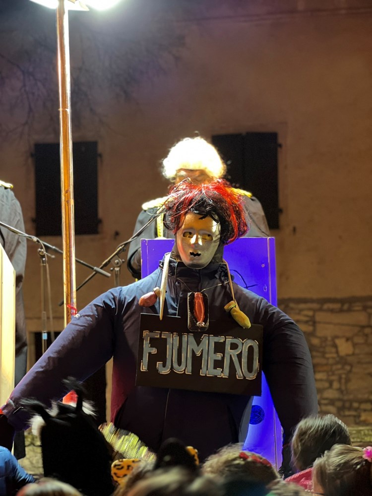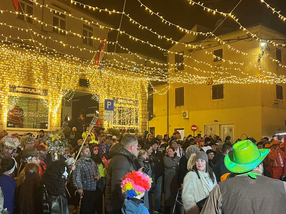 U poslijepodnevnim satima na Placi su se okupile brojne velike i male medulinske maškare, uz bučnu povorku koja je prošla među okupljenima. Atmosferu je zagrijavao DJ Sosa uoči najiščekivanijeg trenutka večeri. Gotovo sat vremena trajalo je čitanje šentence, koja je satirično podsjetila na događaje iz protekle godine, osobito na lokalne izbore i političare, ali i veliku poplavu, a potom je pred vijećnicom zapaljen pust Fjumero, simbolični krivac za sve loše što je mještane snašlo.