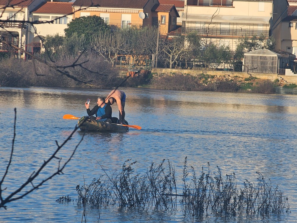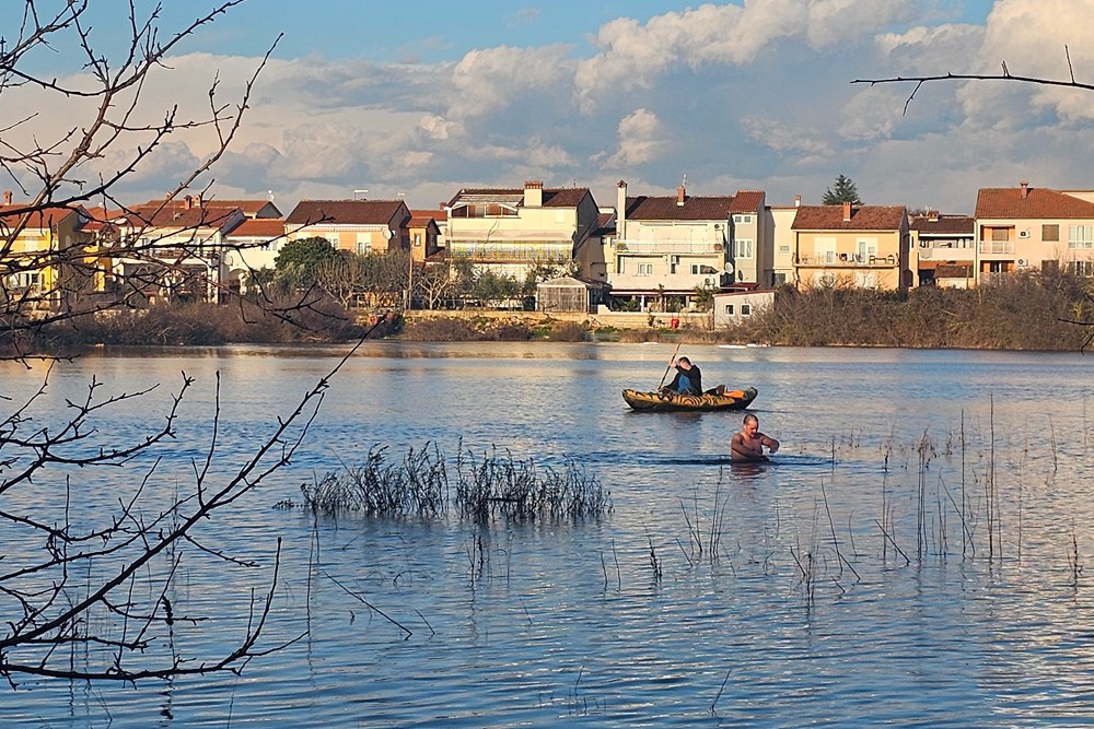 Prvi sunčani dan u veljači veseli Valbandonci iskoristili su za veslanje i kupanje u svojoj poznatoj poplavljenoj vali. Za otvaranje sezone bio je dovoljan probni đir kajakom, skok u vodu i kraće isplivavanje u hladnoj vodi.