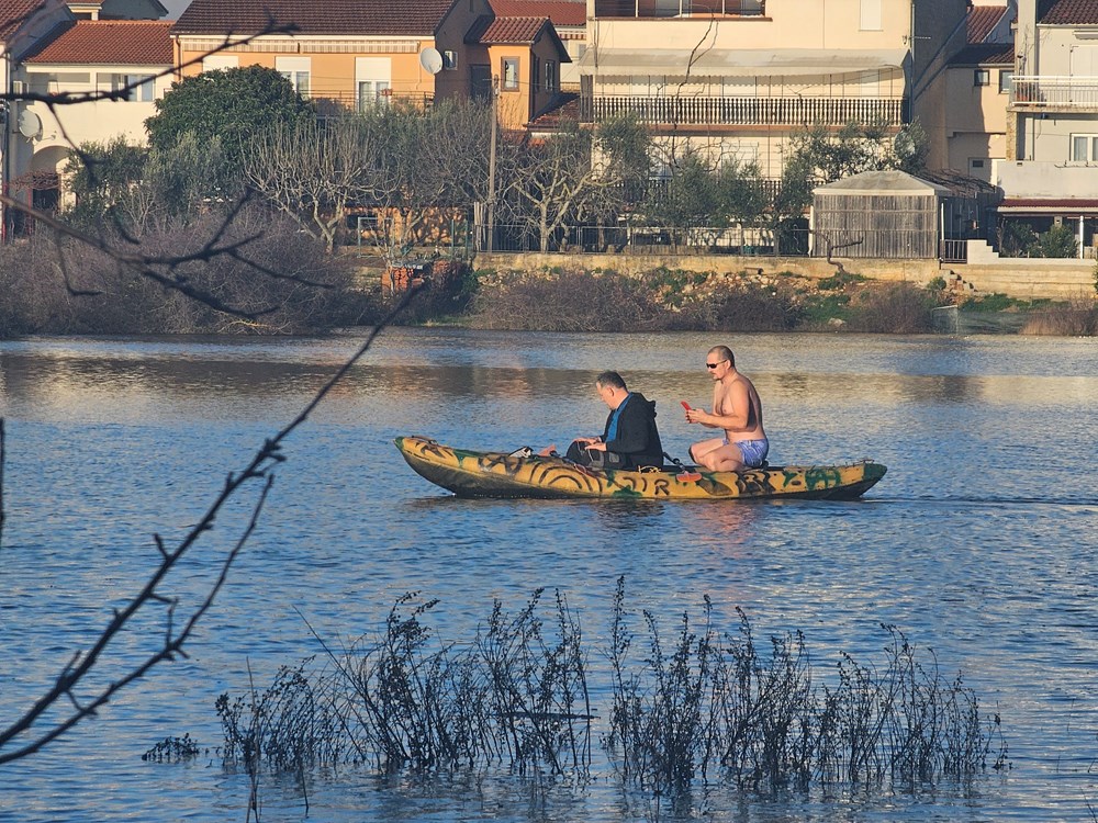 Istina je da razina vode još uvijek prijeti kućama, da je ovo veliki komunalni problem i da će s toplijim vremenom, kako se voda bude zagrijavala, stanari muku mučiti sa smradom, komarcima, zmijama i vodozemcima iz bare. Ali danoj prilici ne gleda se u zube: Tko još u primorju ima ovakvo jezero među kućama?!