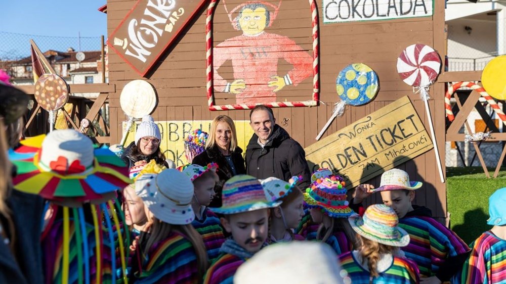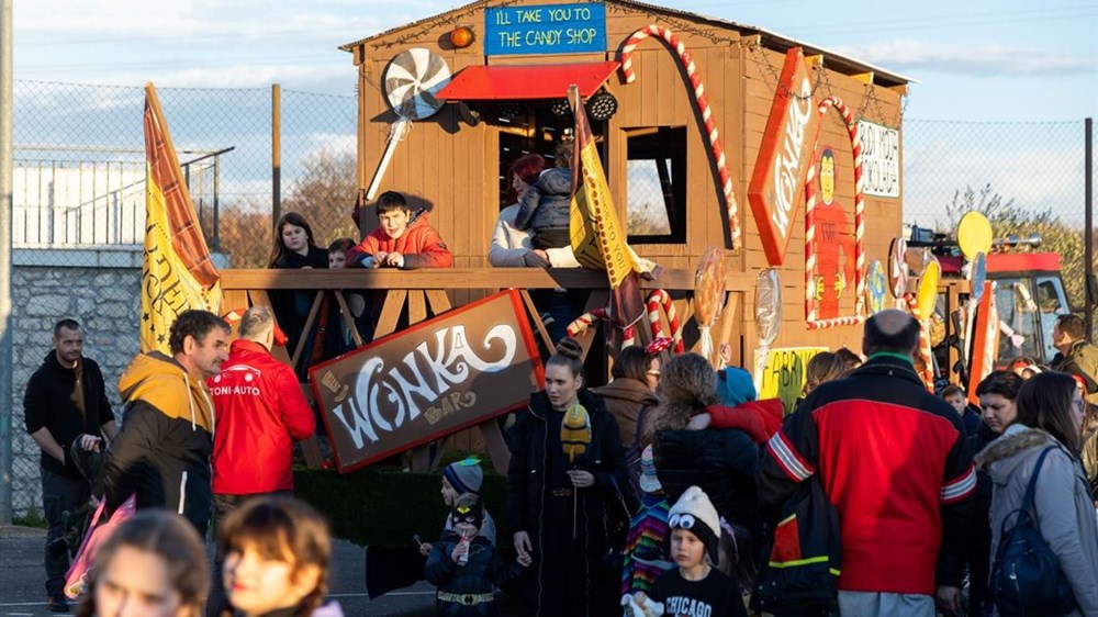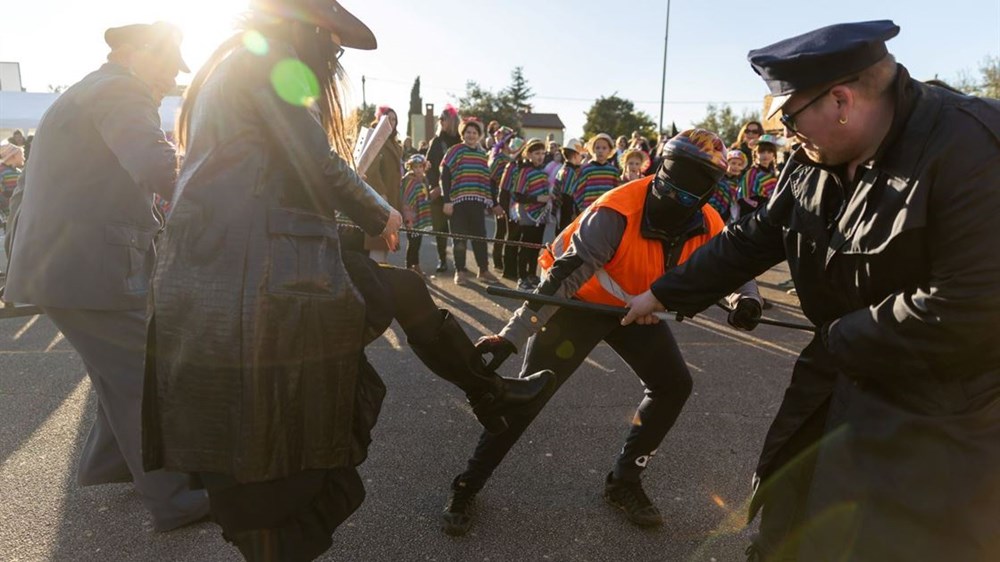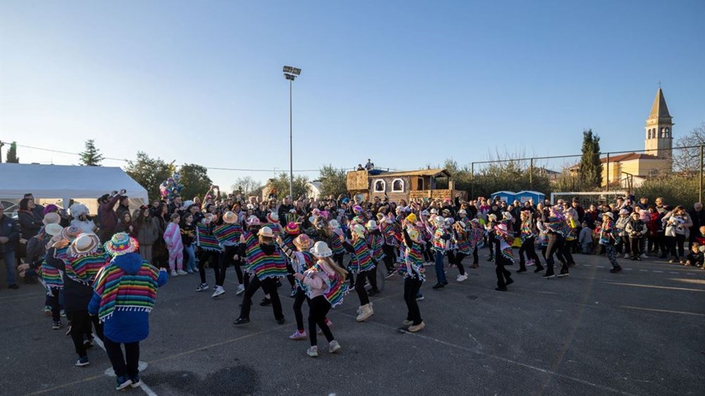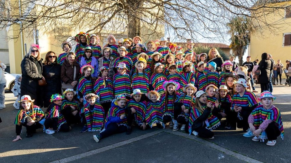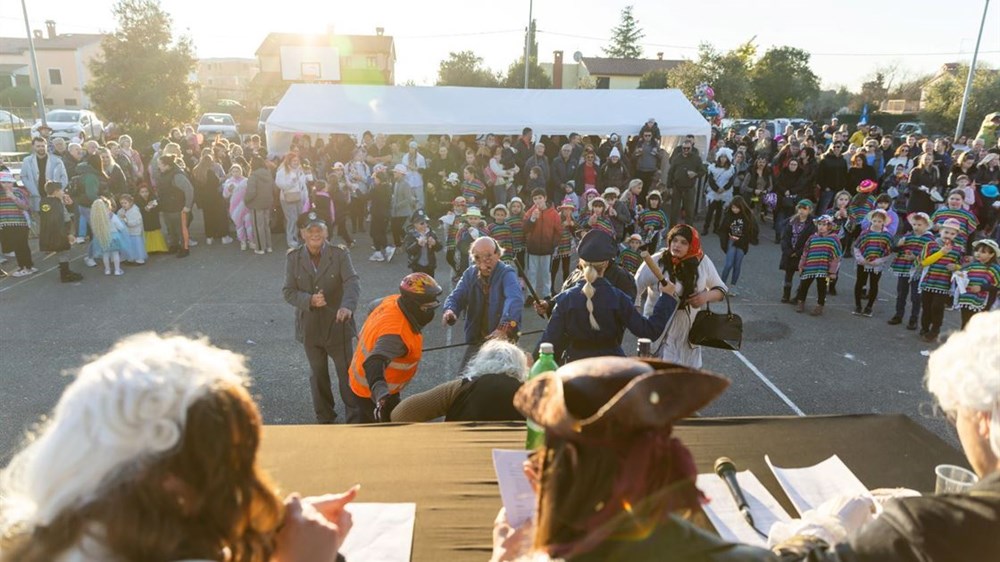 Nakon izbora naj maski za djecu i, tjedan dana kasnije, izbora najboljih "odraslih" maski te karnevalske povorke u nedjelju, sve je jučer popodne kulminiralo šentencom pustu Giacometu Romobiletu. Nekoliko stotina sudionika svih generacija okupilo prije odlaska na polivalentno igralište na kojem je organizirana šentenca. Svojim su se maskama isticali mališani i učenici, a u povorci su im se pridružili roditelji, učitelji, mještani, maškare iz susjednih mjesnih odbora, kao i porečki gradonačelnik Loris Peršurić njegova zamjenica Nataša Basanić Čuš. Nastupili su i učenici Područne škole Nova Vas.