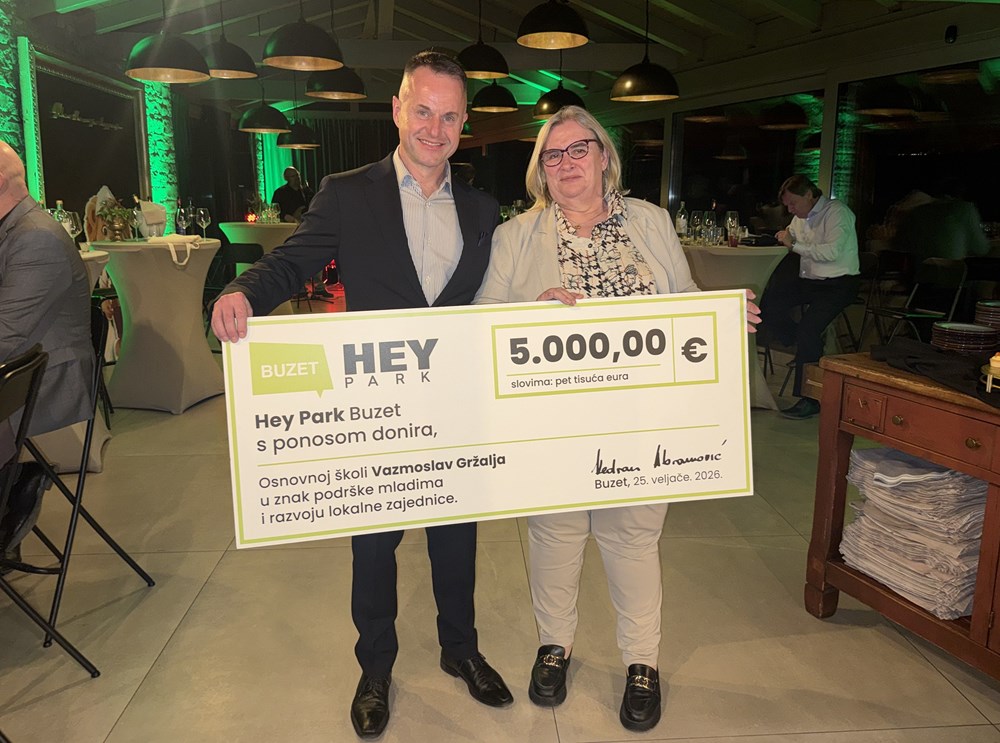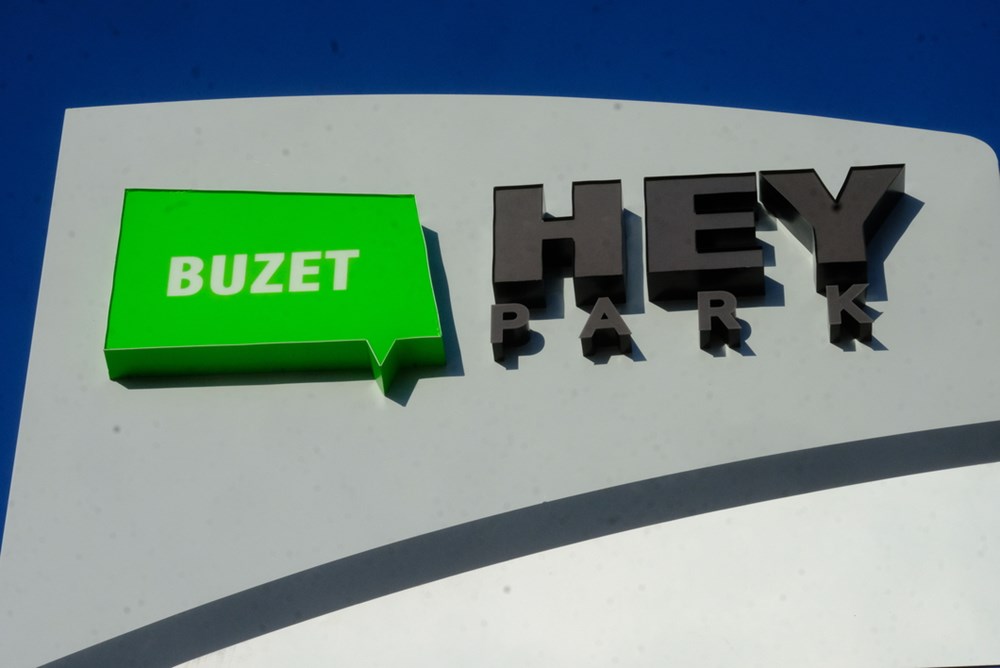 Hey Park Buzet, simboličnim rezanjem vrpce otvorili su buzetski gradonačelnik Damir Kajin i prokurist tvrtke Hey Parks Vedran Abramović. Novi trgovački centar, investicija je vrijedna više od 15 milijuna eura, obuhvaća 5.500 četvornih metara površine i donosi 100 novih radnih mjesta za lokalnu zajednicu.