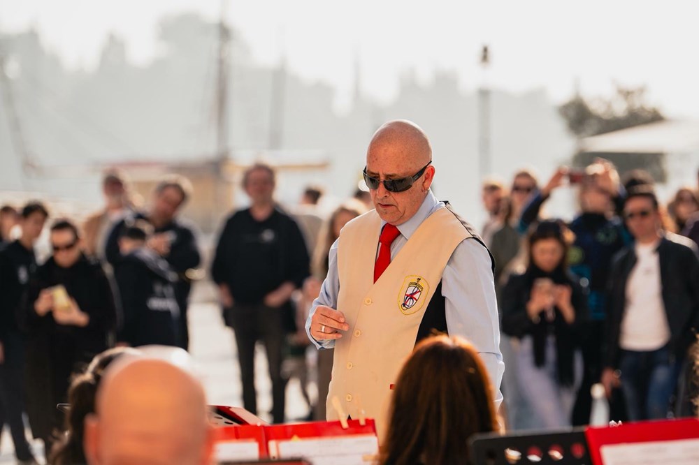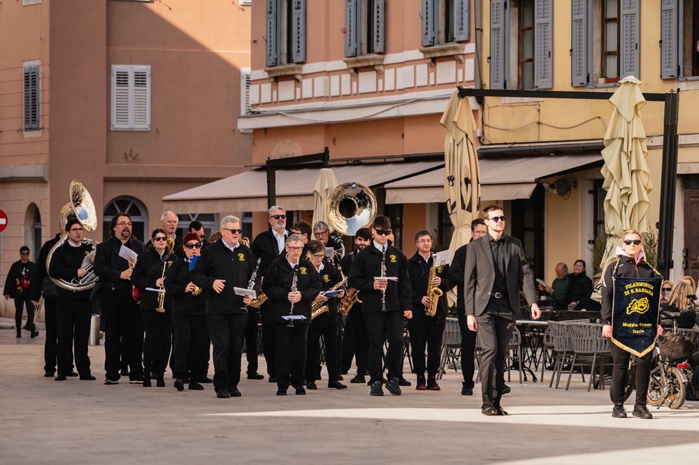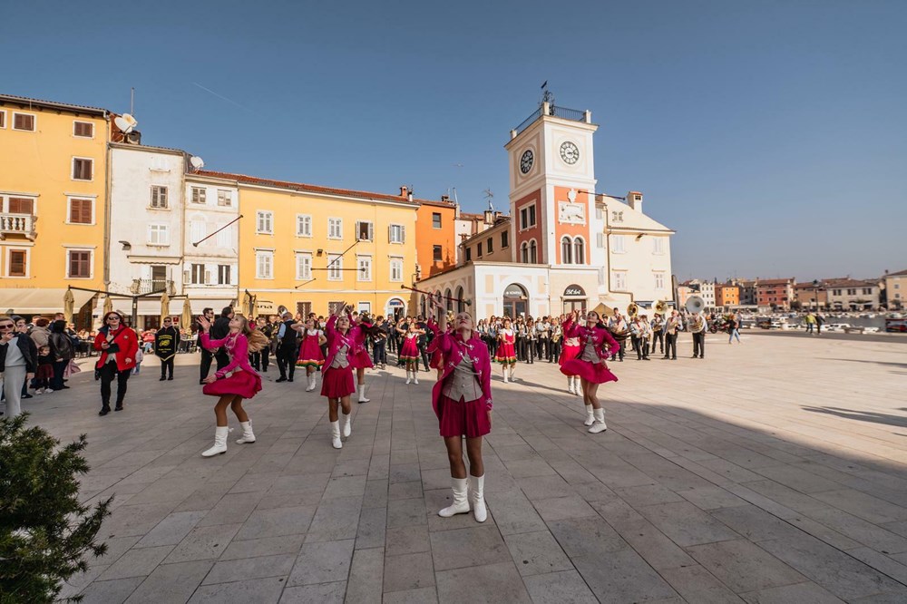 Uvertira je bila pravo iznenađenje - iz tri pravca i uz glazbu na rovinjski glavni Trg stizali su glazbenici - članovi Gradske glazbe iz Virovitice, Filarmonica di Santa Barbara iz talijanske Muggie, te domaćini Limena glazba Rovinj, te su sva tri ansambla - što znači ukupno stotinjak glazbenika - su izveli dobro znanu koračnicu "San Carlo".