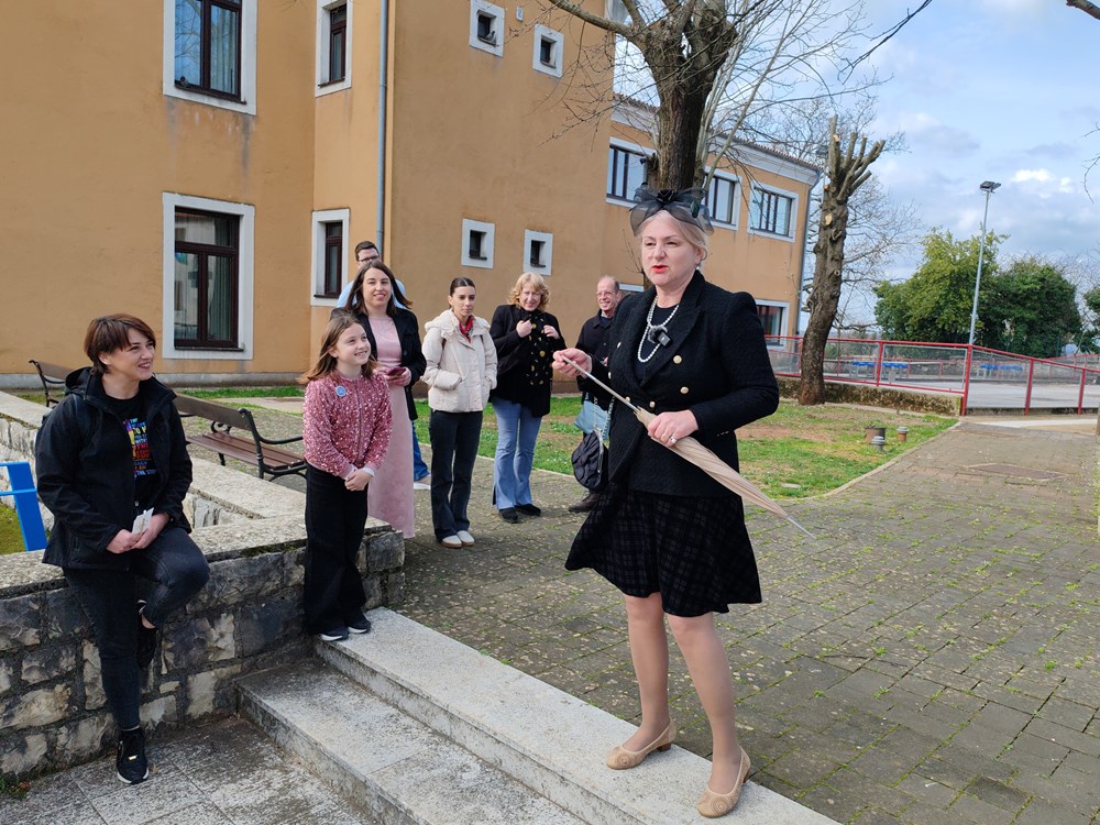 Miranda Škalamera utjelovila je Belušićevu nećakinju, koja je govorila o njegovu životnom putu, nakon čega je održana interpretacijska šetnja po Nedešćini. Šnajdericu Bosiljku Sošić iz Eržišća, koja je šivala za Tita i Jovanku te ambasadore bivše države, utjelovila je Jelena Vickić Stepčić.