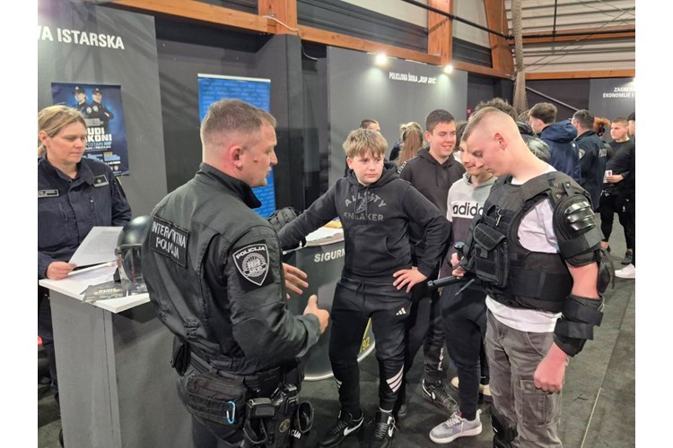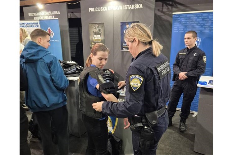 Predstavnici Policijske škole ''Josip Jović'' i predstavnici Policijske uprave istarske sudjelovali su danas na Sajmu poslova u Labinu te su mnogobrojnim mladim ljudima podijelili svoje iskustvo o tome kako je to školovati se i raditi u policiji.