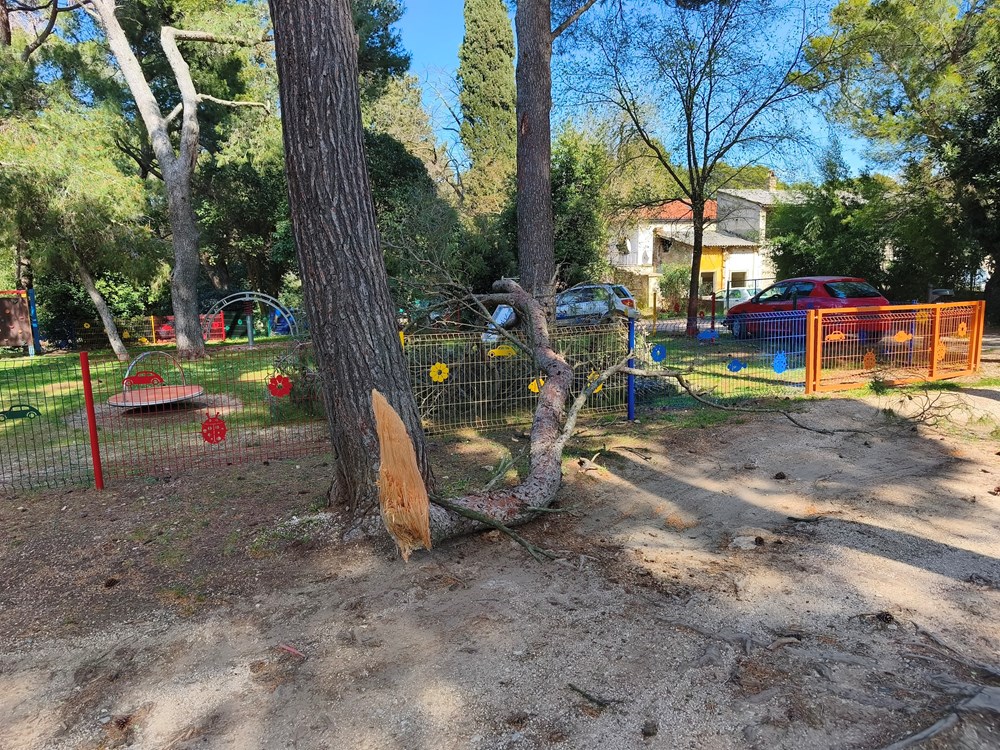 No, građani upozoravaju na potencijalne opasnosti koje se ponavljaju. Jedan čitatelj javio nam je kako je danas, oko dvadesetak minuta prije dojave, velika grana pala na dječje igralište u Ulici Olge Ban u Puli.