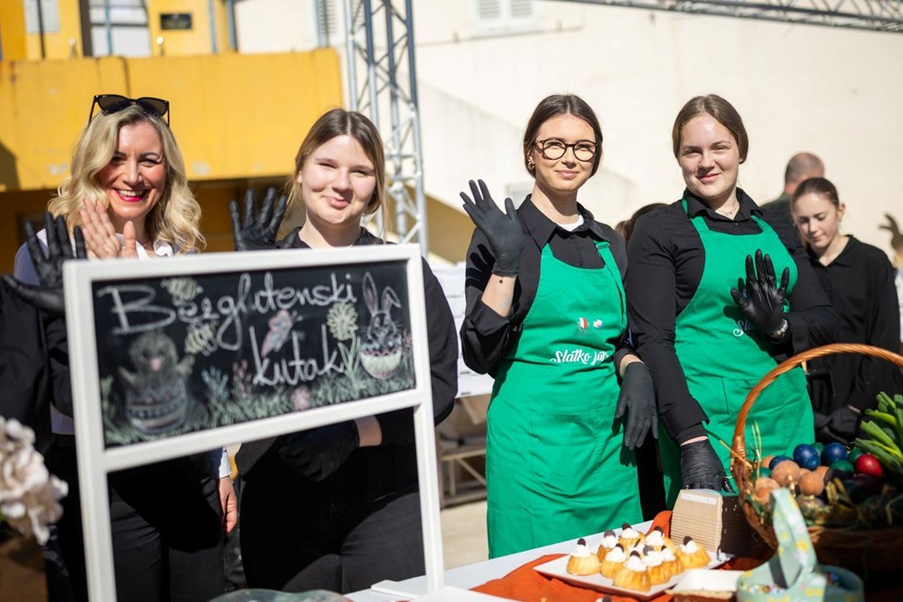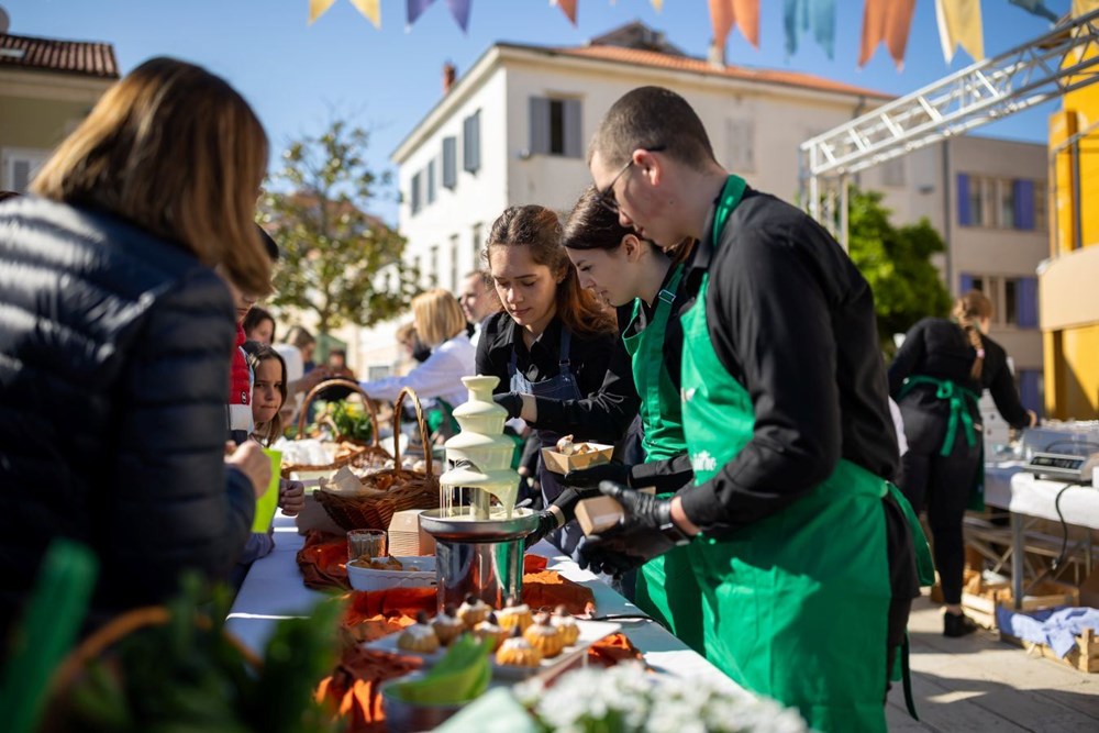 U sklopu Slatkog jutra, učenici i mentori Turističko-ugostiteljske škole Antona Štifanića iz Poreča predstavili su bogatu ponudu tradicionalnih slastica – pince, fritule, povetice, orehnjače i čokoladne pisanice, uz poseban bezglutenski kutak. Veliku pozornost privukla je i čokoladna fontana.