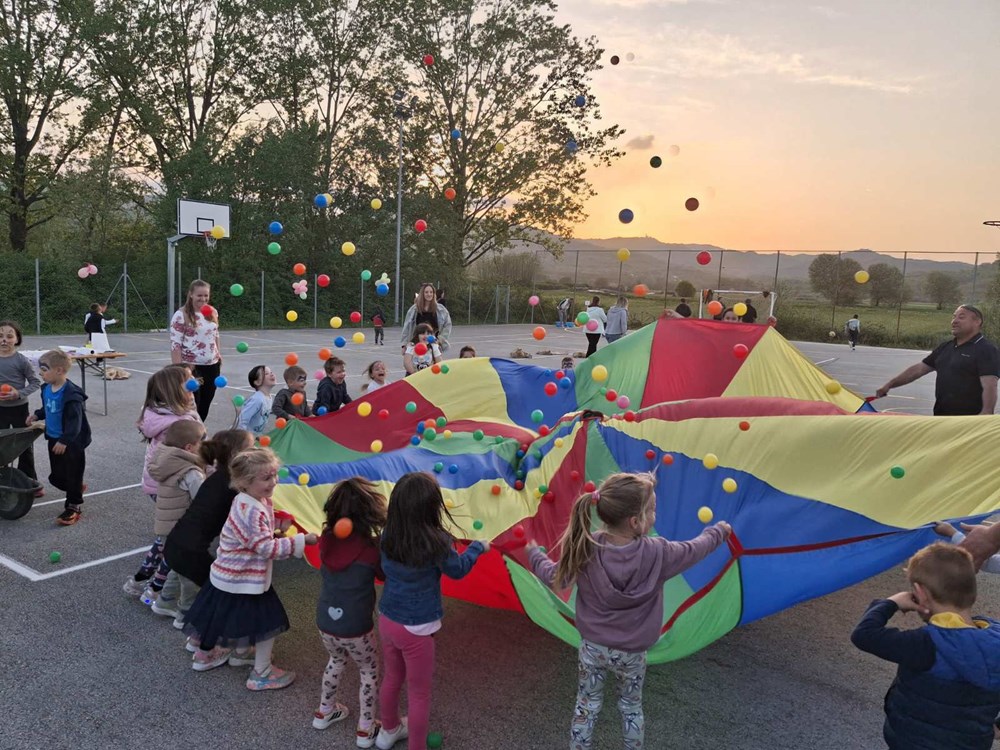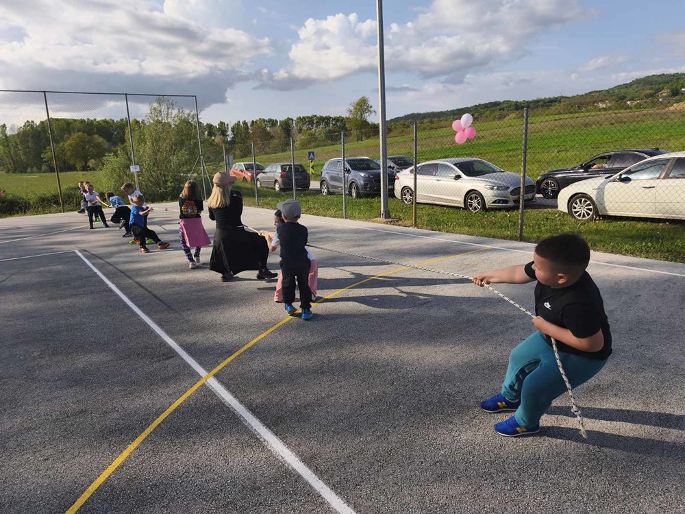 Druženje se nastavilo uz bogatu zakusku, a potom i kroz tradicijske i zabavne igre u kojima su sudjelovali i mali i veliki. U sklopu programa bila je postavljena i izložba plakata s aktivnostima provedenima kroz ERASMUS+ projekt, čime je dodatno istaknuta širina rada vrtića. Proslava je zaokružena velikom rođendanskom tortom i puhanjem svjećica, uz želje za još mnogo uspješnih vrtićkih godina i lijepih zajedničkih trenutaka. Dan vrtića protekao je u veselom i pozitivnom ozračju, a brojni osmijesi i zadovoljstvo svih prisutnih potvrda su uspješno obilježenog Dana vrtića.