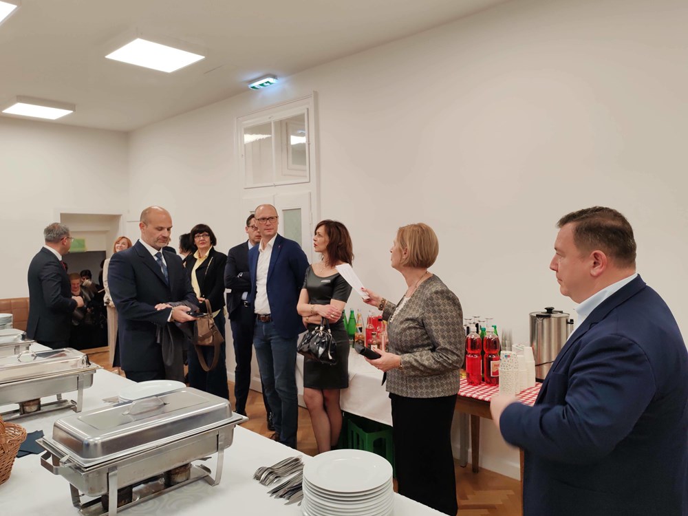 Prisutnima su se obratili i Tiziano Sošić, Paolo Demarin i Orieta Marot, koji su čestitali na ovom uspješnom projektu obnove sjedišta labinske Zajednice Talijana, istaknuvši njezinu aktivnost i rad na očuvanju kulture, jezika i identiteta talijanske nacionalne manjine na ovim prostorima. U kulturnom programu nastupili su Mješoviti zbor Zajednice Talijana i Dječji zbor Minicantanti. Svi zajedno razgledali su obnovljene prostorije te se zadržali na prigodnom druženju i koncertu Sergia Predena Gatta i glazbenog sastava "El Gatto e le Volpi".