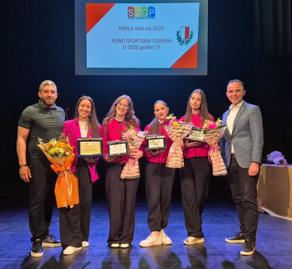 Potvrdu kvalitete svog rada i postignuća SPK USB Poreč dobio je i na nedavnoj svečanosti Dan porečkog sporta, na kojoj su proglašeni najbolji sportaši i sportašice te sportski djelatnici za 2025. godinu. Trenerica i koreografkinja Ivana Domazet nagrađena je kao najbolja trenerica mlađih dobnih kategorija, a perspektivnim mladim sportašicama proglašene su Nika Brčić, Lana Brčić i Emily Jakominić, osvajačice svjetskog srebra. Tom je prigodom istaknuto da su članice kluba osvojile dvije srebrne medalje u konkurenciji juniorki i kadetkinja na Svjetskom prvenstvu u Budimpešti te 11 zlatnih, pet srebrnih i četiri brončane medalje na Prvenstvu Hrvatske u mlađim dobnim kategorijama. USB-ovke su svojim nastupom publici još jednom pokazale zašto pripadaju hrvatskom, pa i svjetskom vrhu.