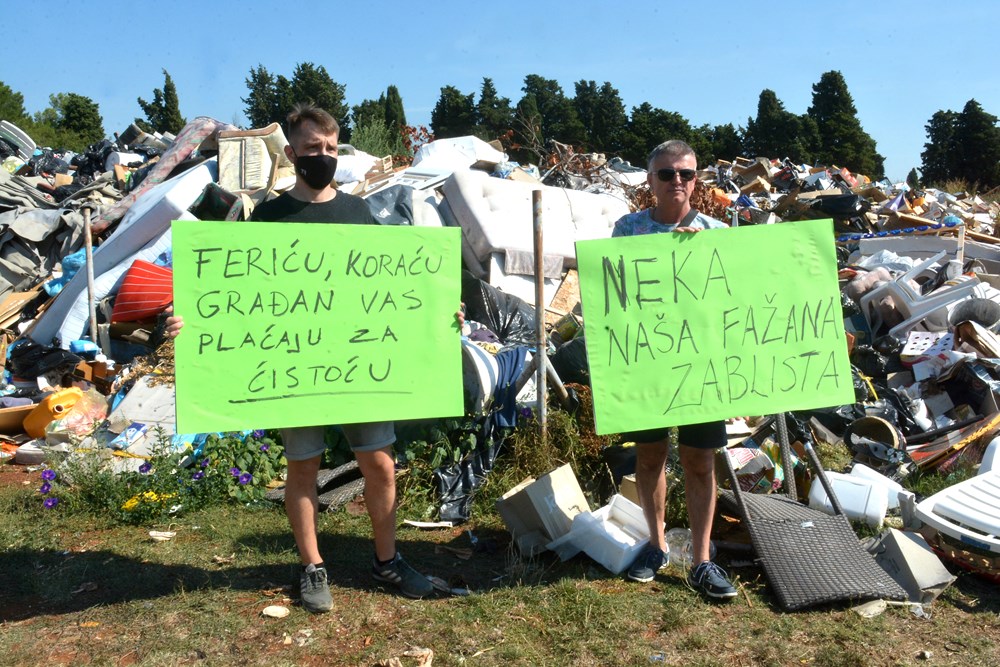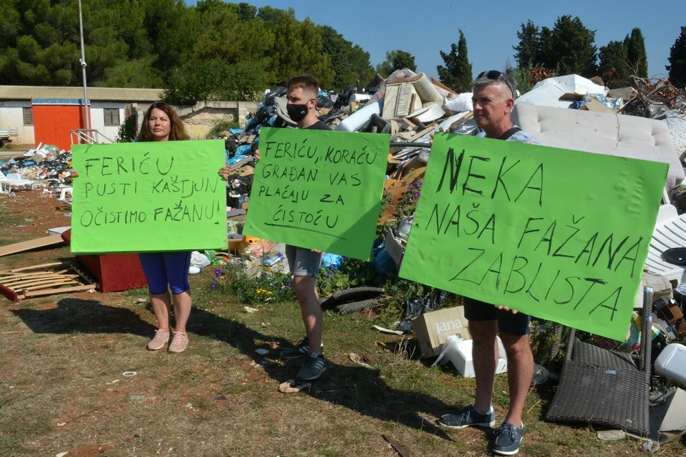 - Danas smo s grupom građana organizirali ovu akciju da bismo skrenuli pažnju na akutni problem otpada i divljih deponija koji se šire po Fažani. To je problem koji postoji dugi niz godina, ali se skriva. Ovog ljeta problem je narastao do drastičnih razmjera: bilo je čak sedam požara na ilegalnom deponiju pored galižanske ceste, gdje vjetar nosi taj otpad jer ga turisti jednostavno nemaju gdje bacati, rekla je Udovički, dok načelnik Korać, koji nije bio tamo, ali je poslao priopćenje, kaže da je povod za prosvjed u potpunosti izmišljen.