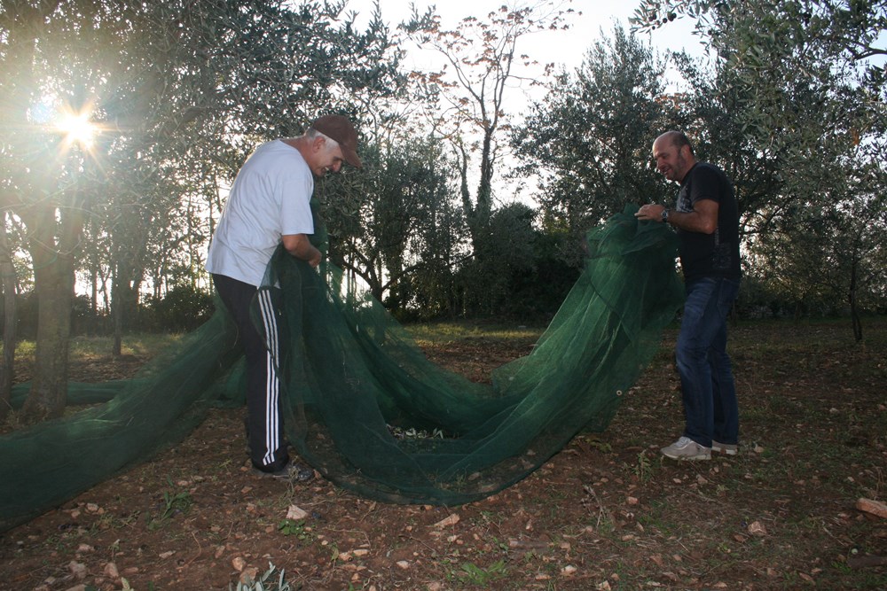 Nakon što je otresao ulike na tlo, mrežu mu pomaže sakupiti i plodove u kašete prebaciti Nenad Draković. Berba je tek počela, ulike će sada trebati voziti u mlin, a Perojci najčešće masline voze na meljavu u Vodnjan, Fažanu i Galižanu.