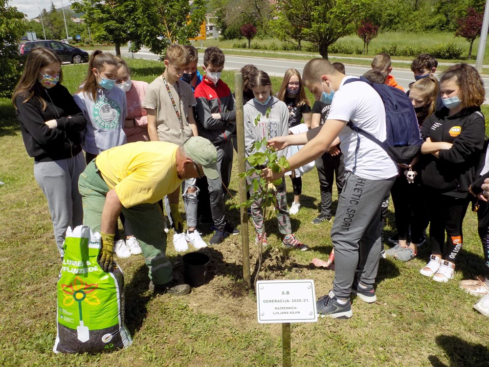Dva nova stabla posadili su učenici iz 8.a i 8.b, njih 44, s razrednicama Natašom Medicom i Ljiljanom Kajin, i time nastavili tradiciju koja je rijedak, moguće i jedini primjer da učenici završetak osnovnoškolskog školovanja obilježavaju na ovakav simboličan način i sade stabla u svoj park. Uz svako stablo postavljena je pločica s oznakom školske generacije i imenom razrednika.
