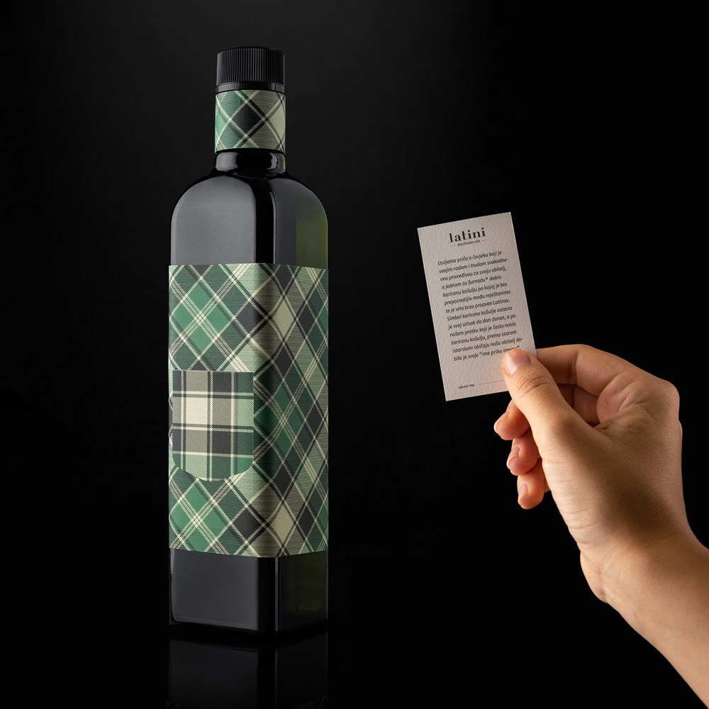 - Dizajn ove boce ulja slijedi tradiciju Latinovih, pa je tako ovaj proizvod dobio svoje karirano "ruho", kao i džepić u kojemu je zataknut papirić koji priča stoljetnu priču ove obitelji.