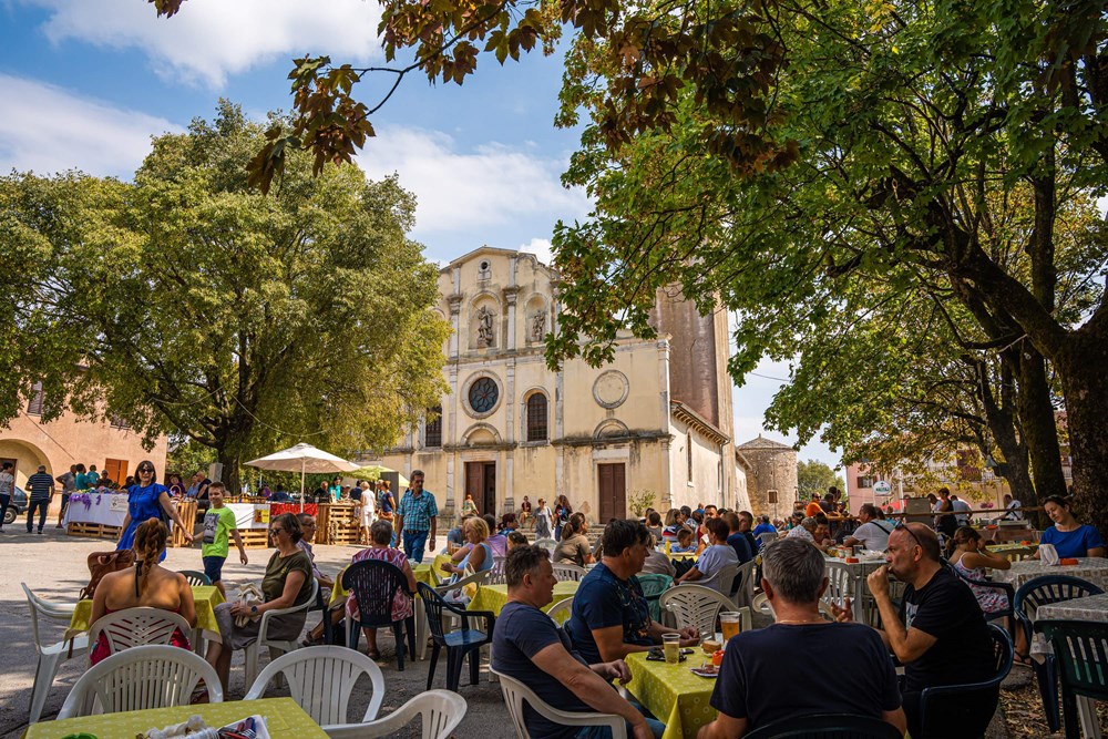 Ispred crkve svoje su proizvode izložili OPG-ovci, lokalni poljoprivrednici, a osim kobasica, kreka, marmelade i meda ove godine mogao se kupiti istarski češnjak * U večernjem programu slijedio je nastup Replay banda Zad Kaštela te konačno udarni izvođač Ivan Zak koji je okupio velik broj publike. Istoga dana još su u igralištu kod parka svirali Malvazija band, te u The Baru Remix band
