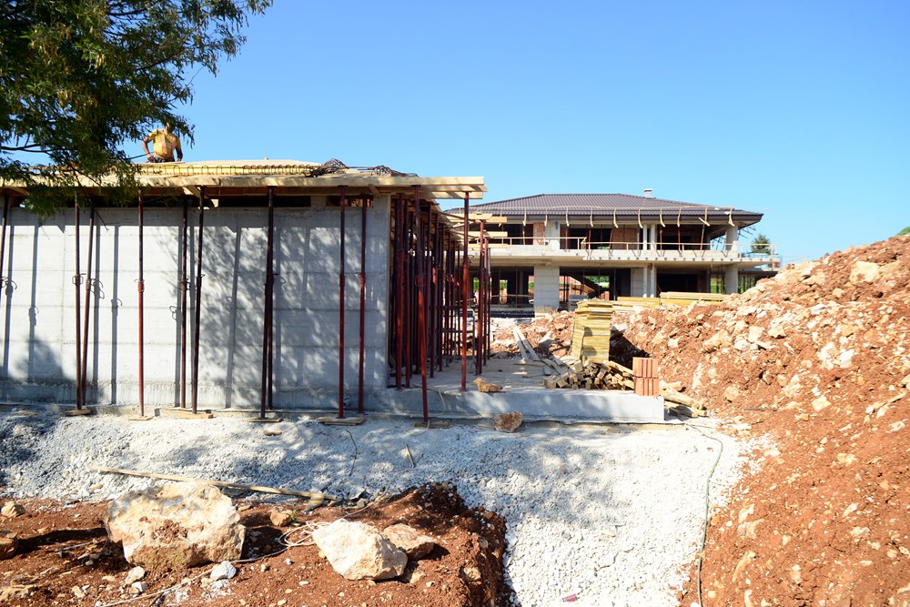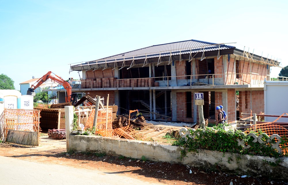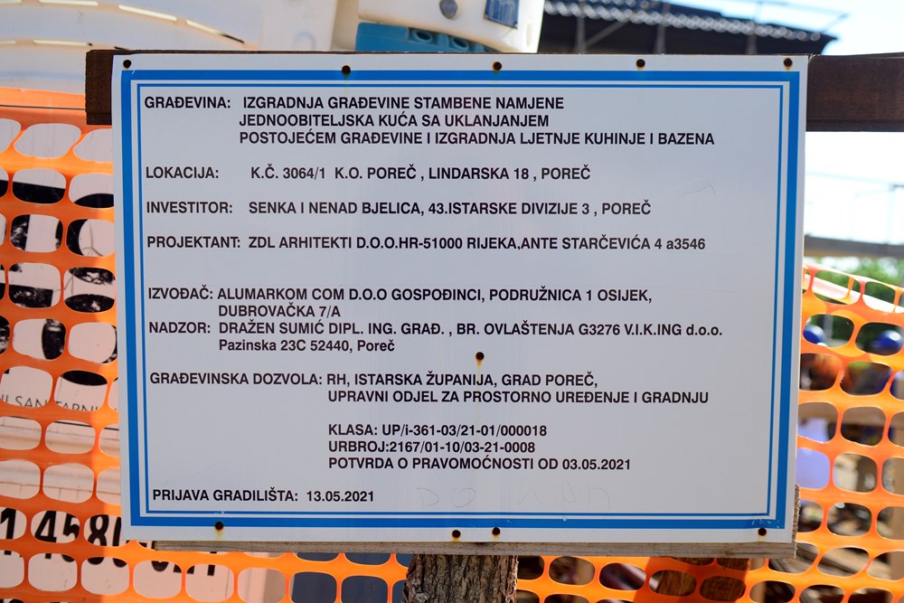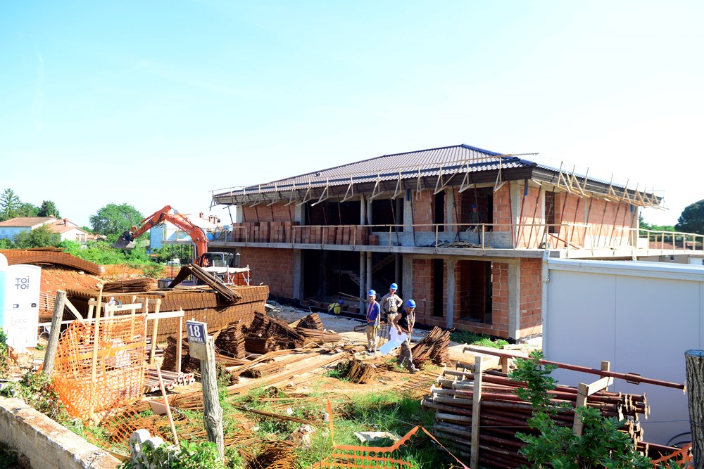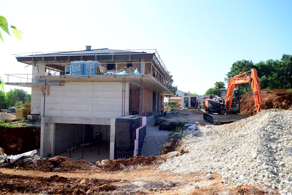 Riječ je o dvije etaže od ukupno 500-tinjak kvadrata, koje se grade već desetak mjeseci, a ovih dana stavljene su pod krov i sve više i više poprimaju konture moderne kuće. Lokacija je, rekli bi neki, elitna - malo obiteljsko naselje na brdu sjeverno od centra Poreča.
